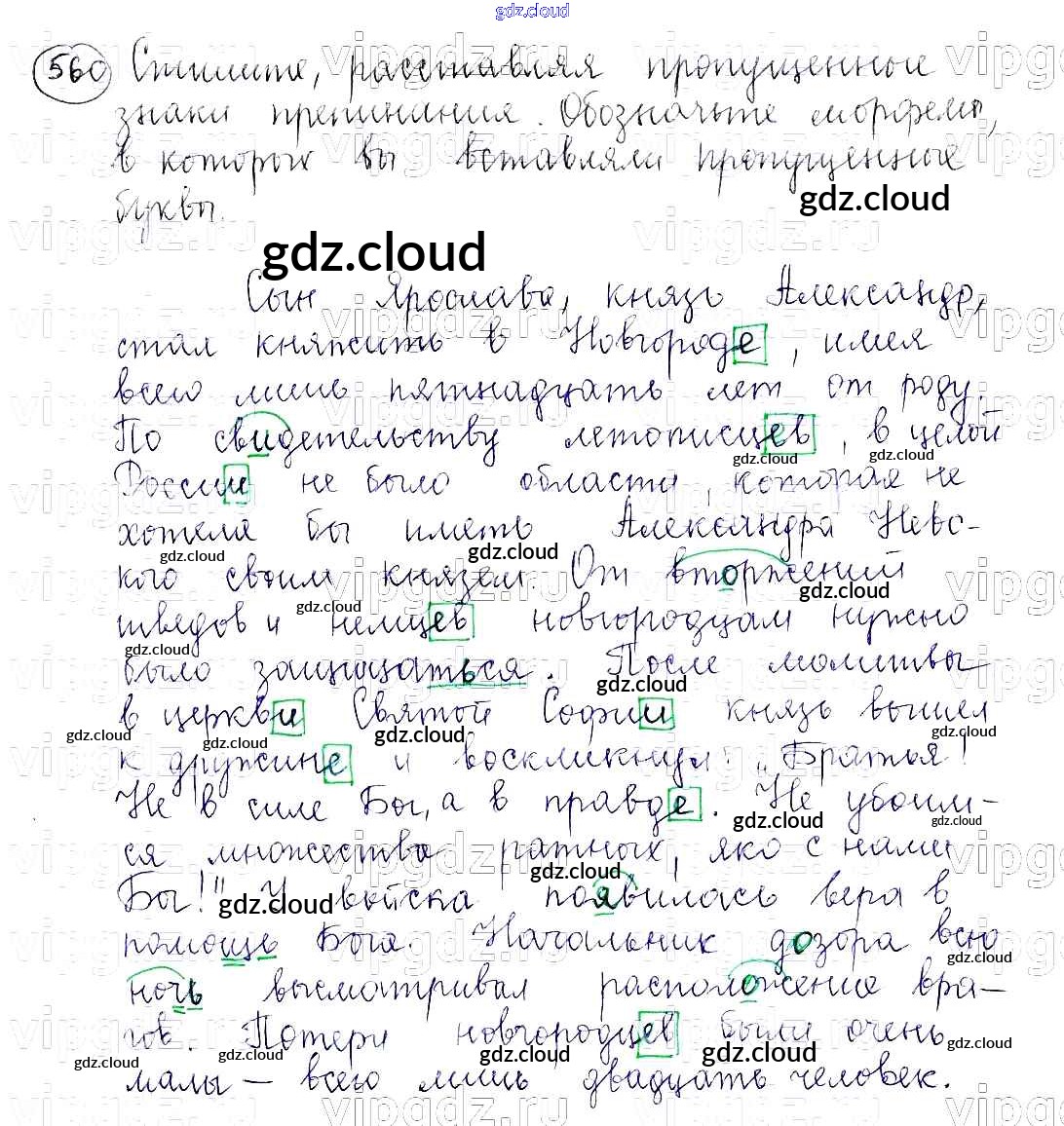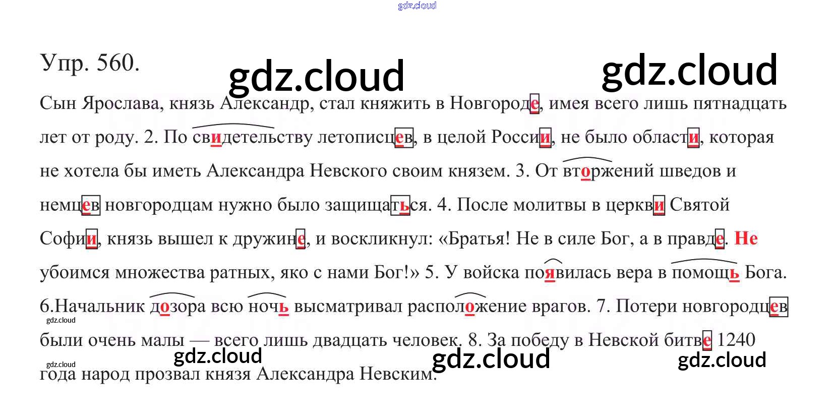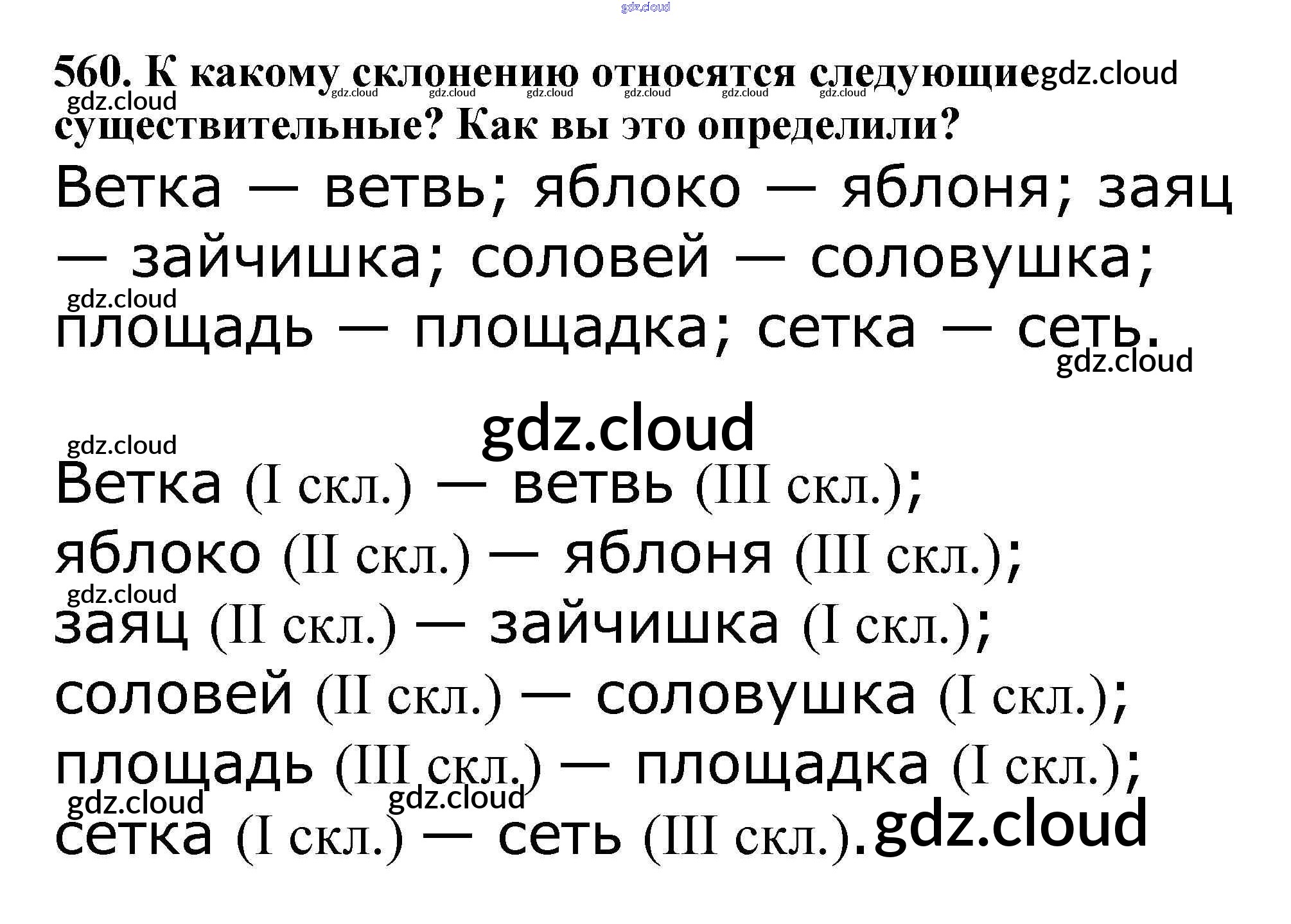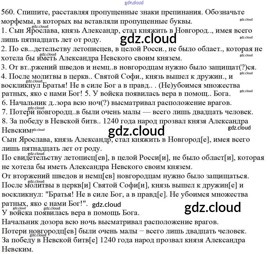 Ответ на задание 560 Учебник Русский язык за 5 (пятый) класс Баранов, Ладыженская, Тростенцова, Кулибаба, Григорян 2016, 2019 Часть 1, 2