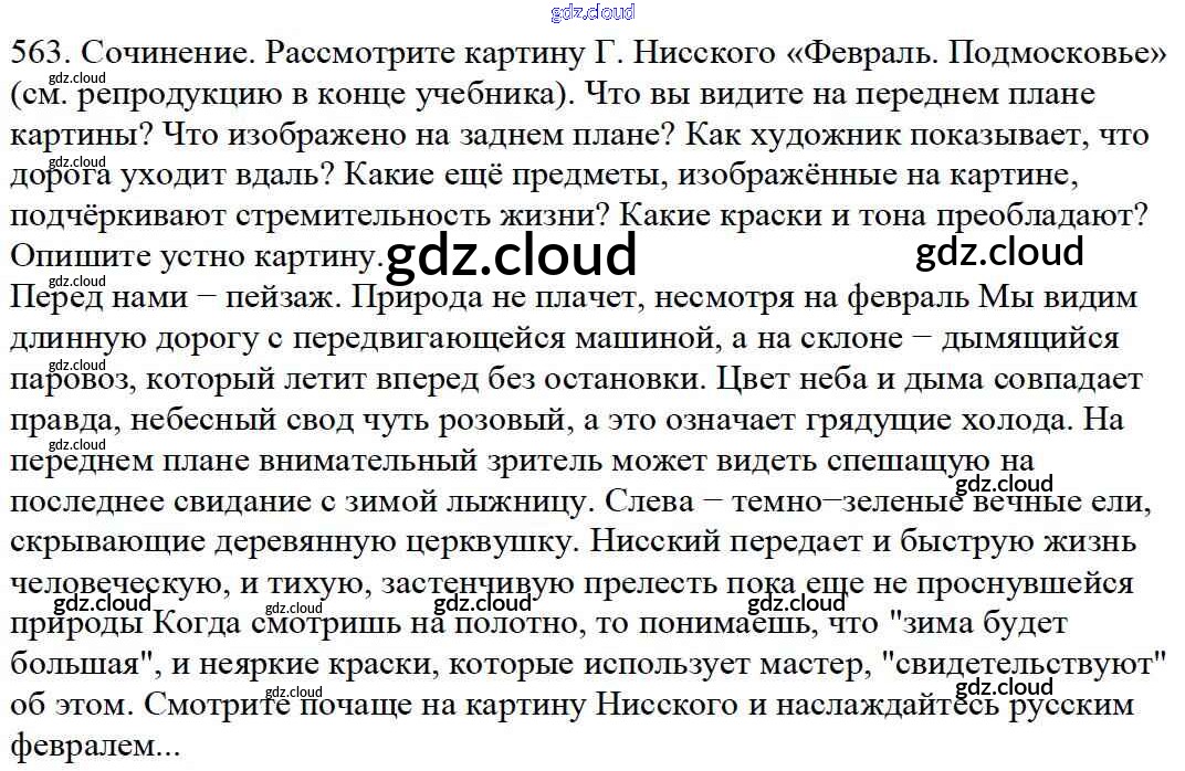 Ответ на задание 563 Учебник Русский язык за 5 (пятый) класс Баранов, Ладыженская, Тростенцова, Кулибаба, Григорян 2016, 2019 Часть 1, 2