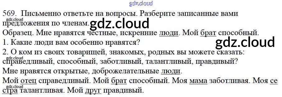 Ответ на задание 569 Учебник Русский язык за 5 (пятый) класс Баранов, Ладыженская, Тростенцова, Кулибаба, Григорян 2016, 2019 Часть 1, 2