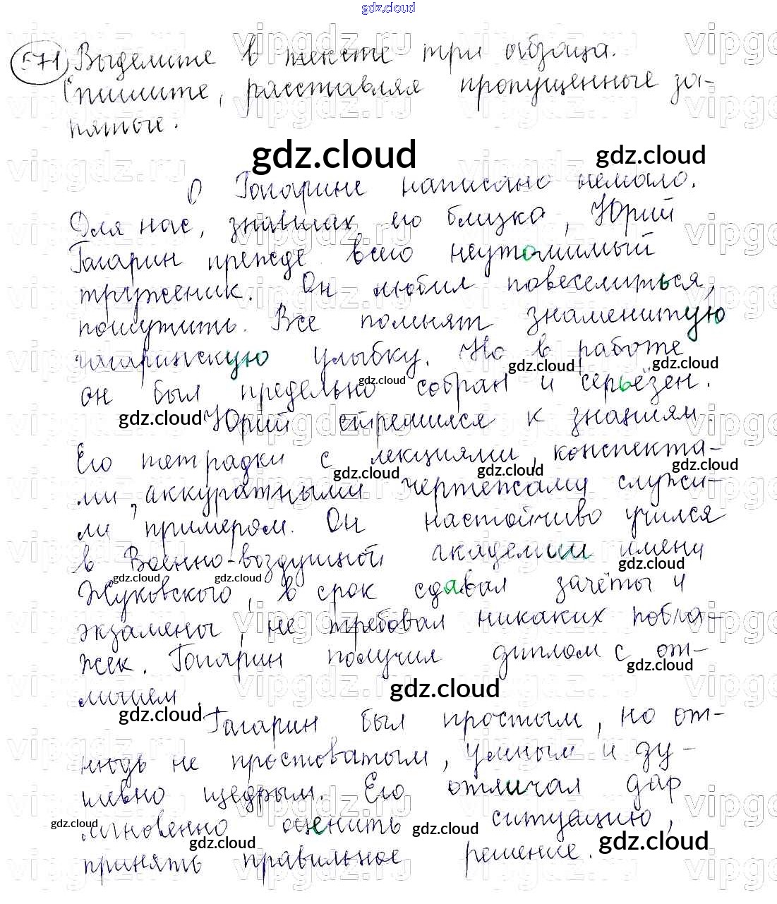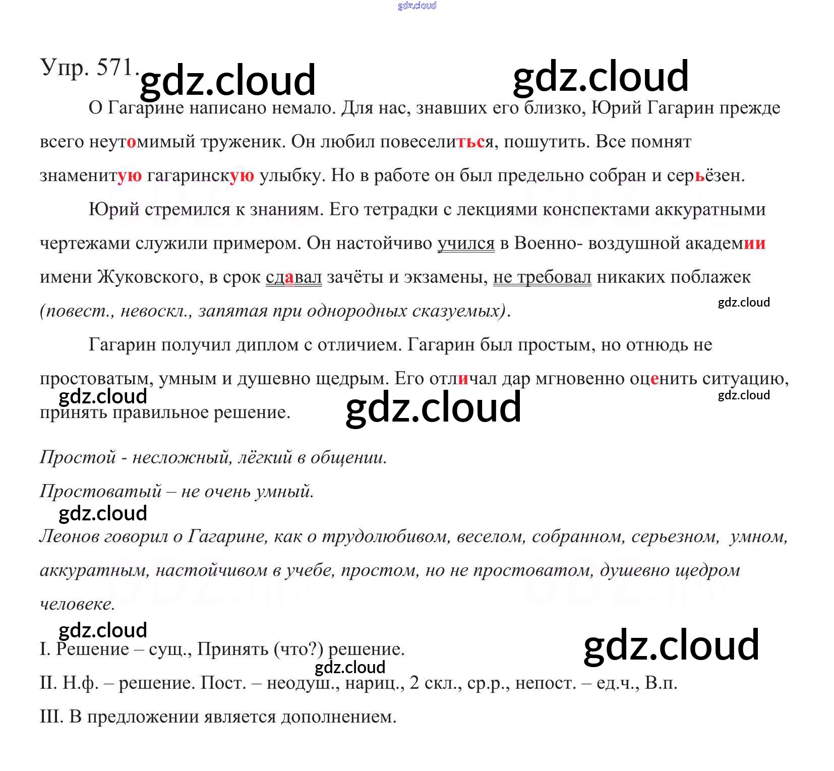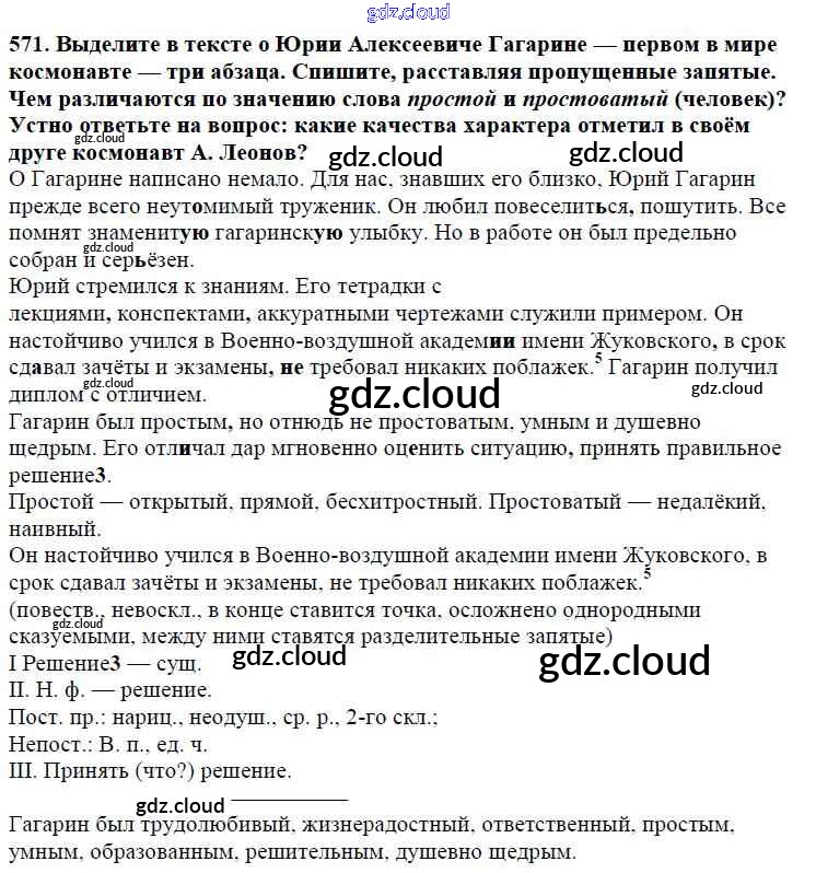 Ответ на задание 571 Учебник Русский язык за 5 (пятый) класс Баранов, Ладыженская, Тростенцова, Кулибаба, Григорян 2016, 2019 Часть 1, 2