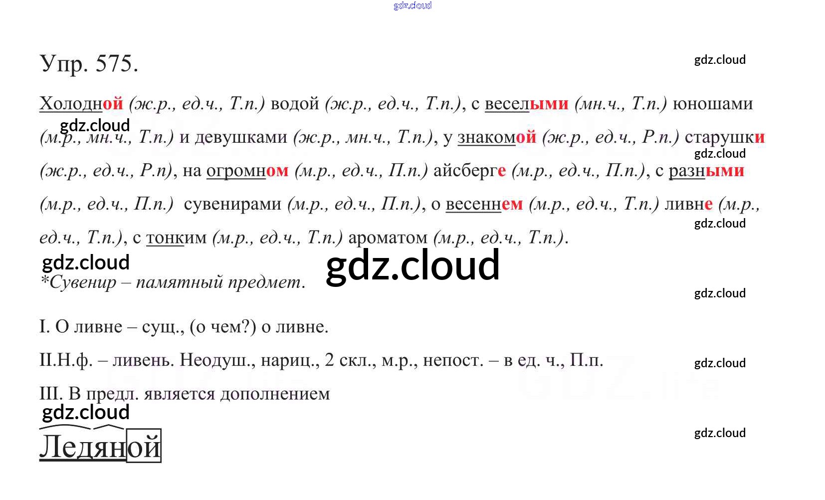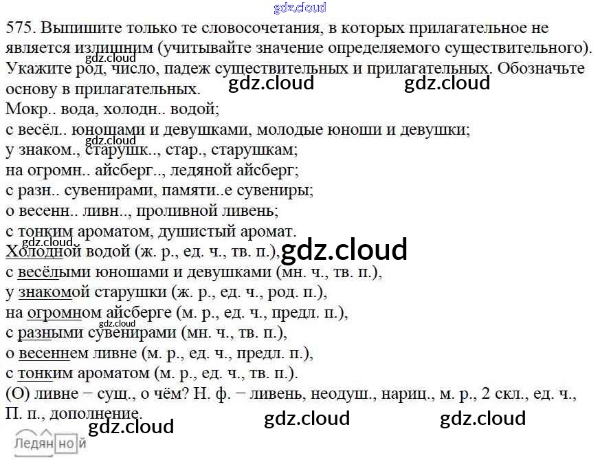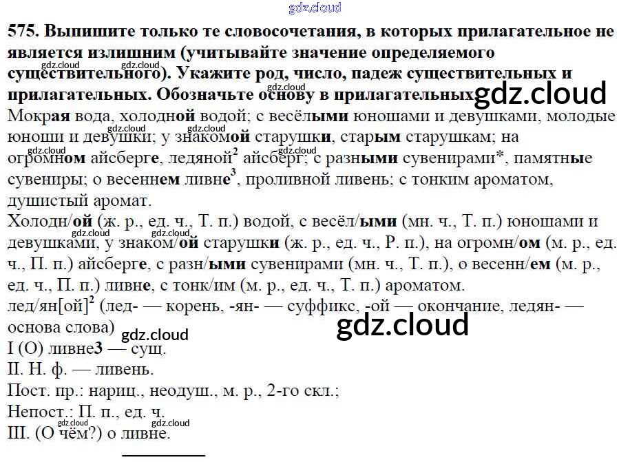 Ответ на задание 575 Учебник Русский язык за 5 (пятый) класс Баранов, Ладыженская, Тростенцова, Кулибаба, Григорян 2016, 2019 Часть 1, 2
