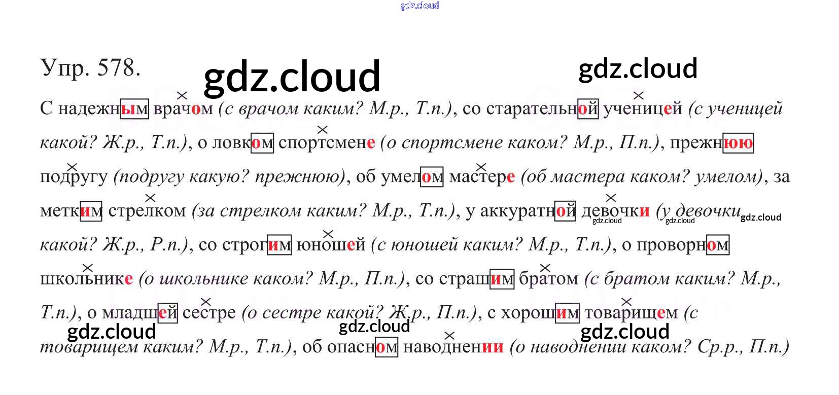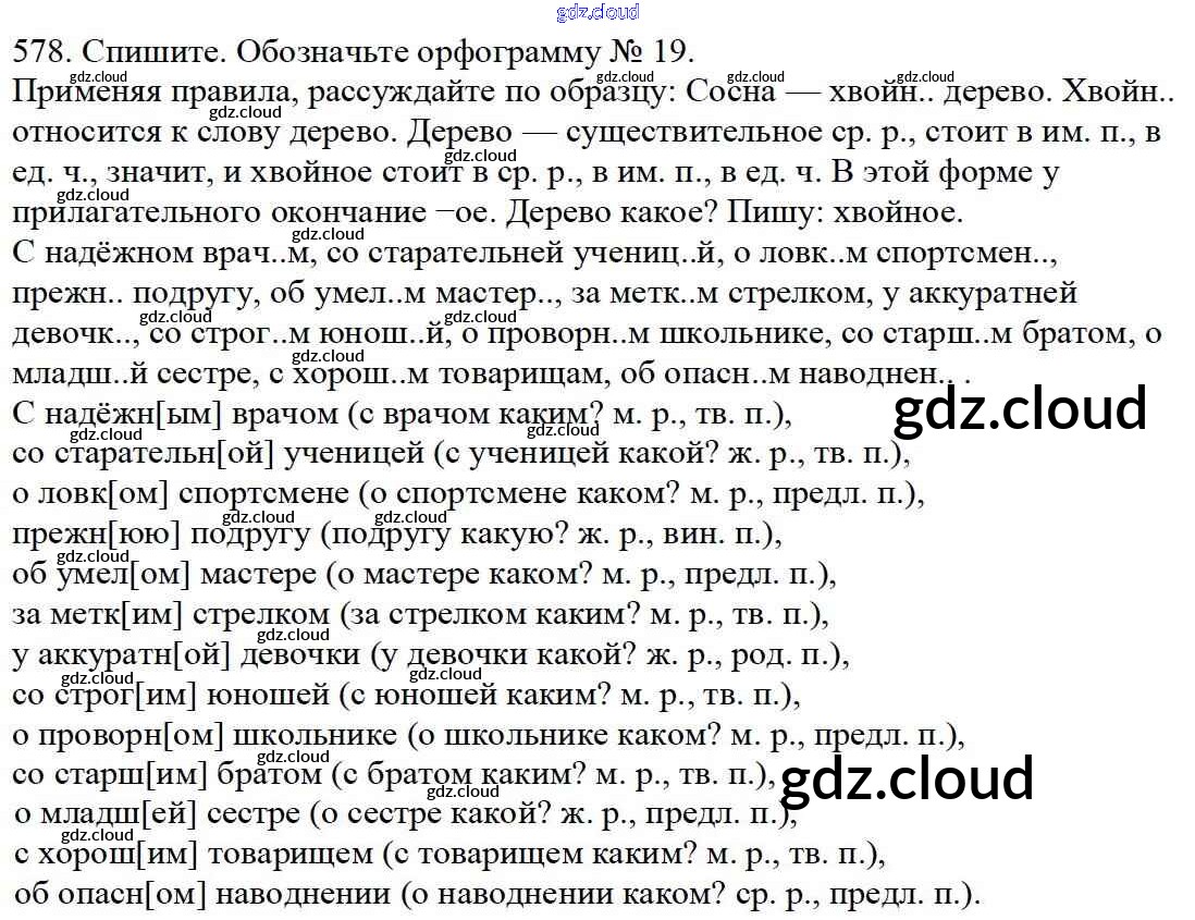 Ответ на задание 578 Учебник Русский язык за 5 (пятый) класс Баранов, Ладыженская, Тростенцова, Кулибаба, Григорян 2016, 2019 Часть 1, 2
