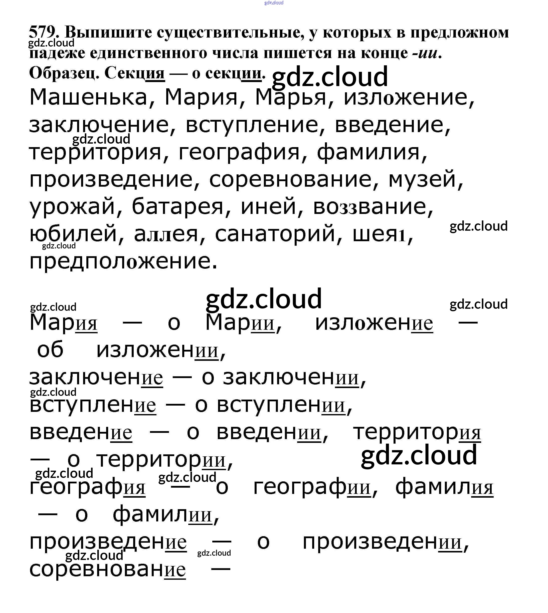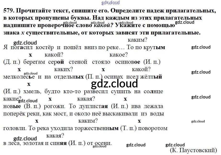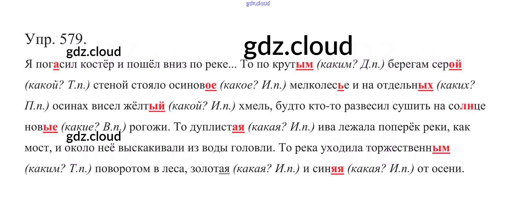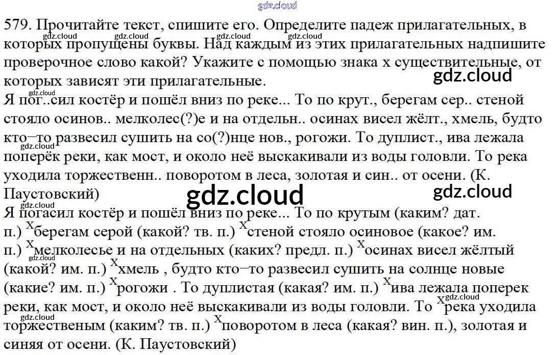 Ответ на задание 579 Учебник Русский язык за 5 (пятый) класс Баранов, Ладыженская, Тростенцова, Кулибаба, Григорян 2016, 2019 Часть 1, 2