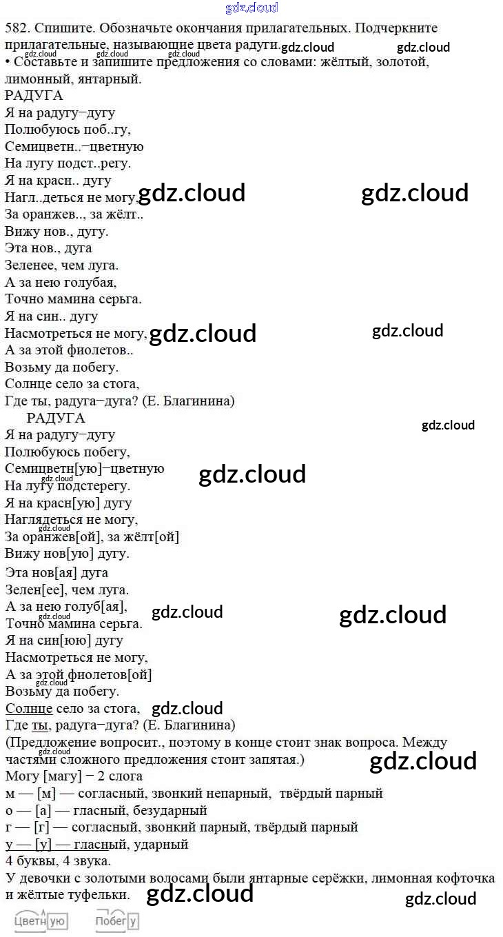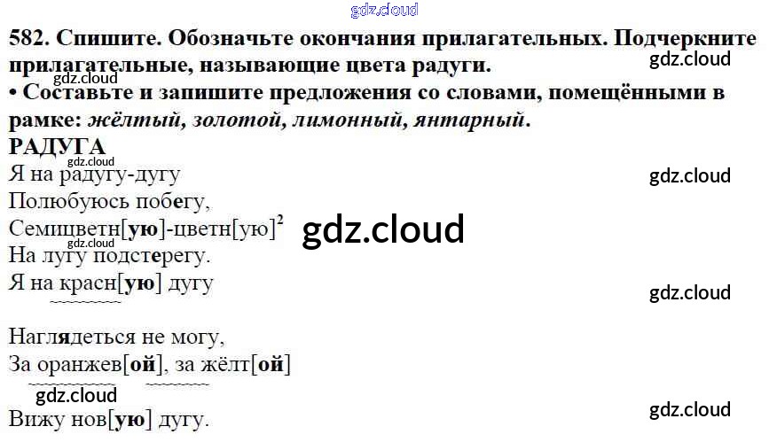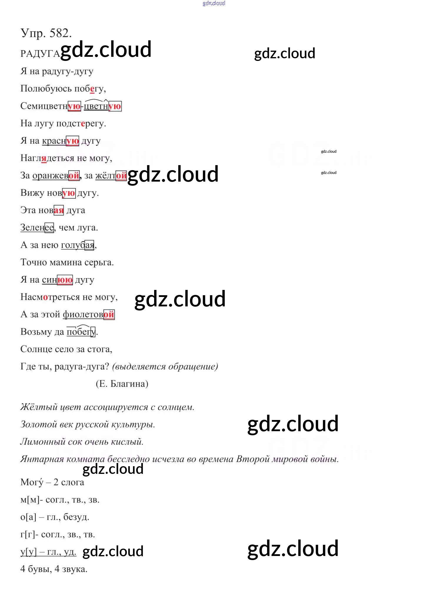 Ответ на задание 582 Учебник Русский язык за 5 (пятый) класс Баранов, Ладыженская, Тростенцова, Кулибаба, Григорян 2016, 2019 Часть 1, 2