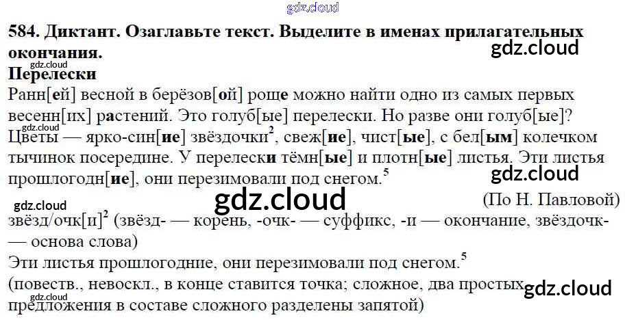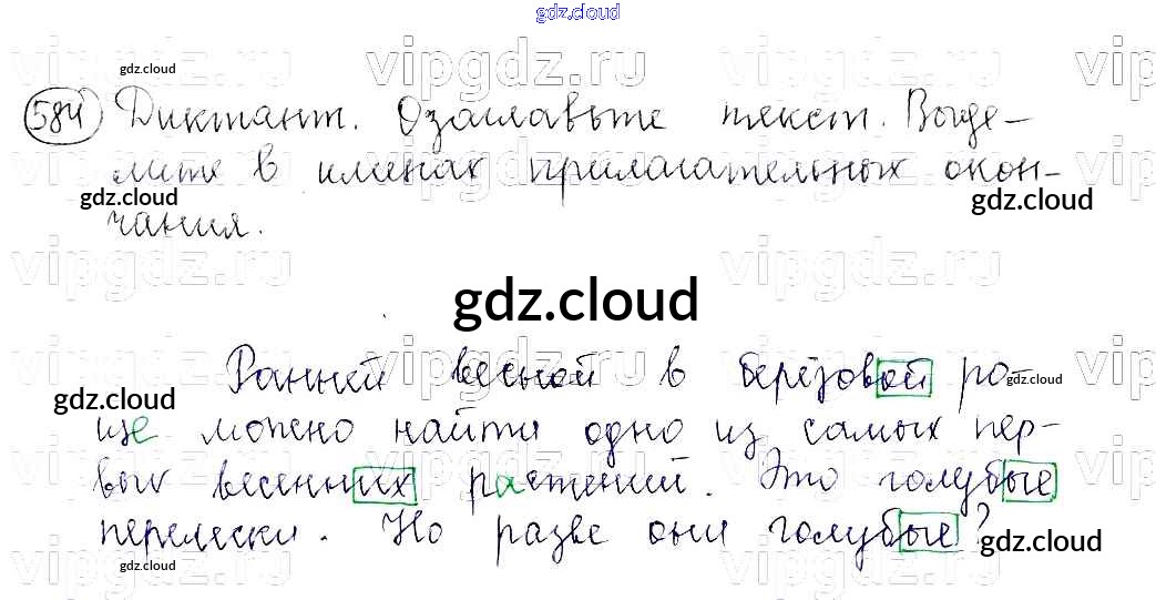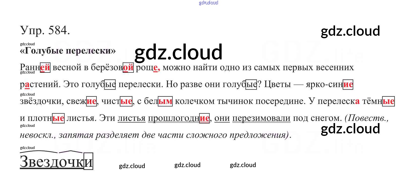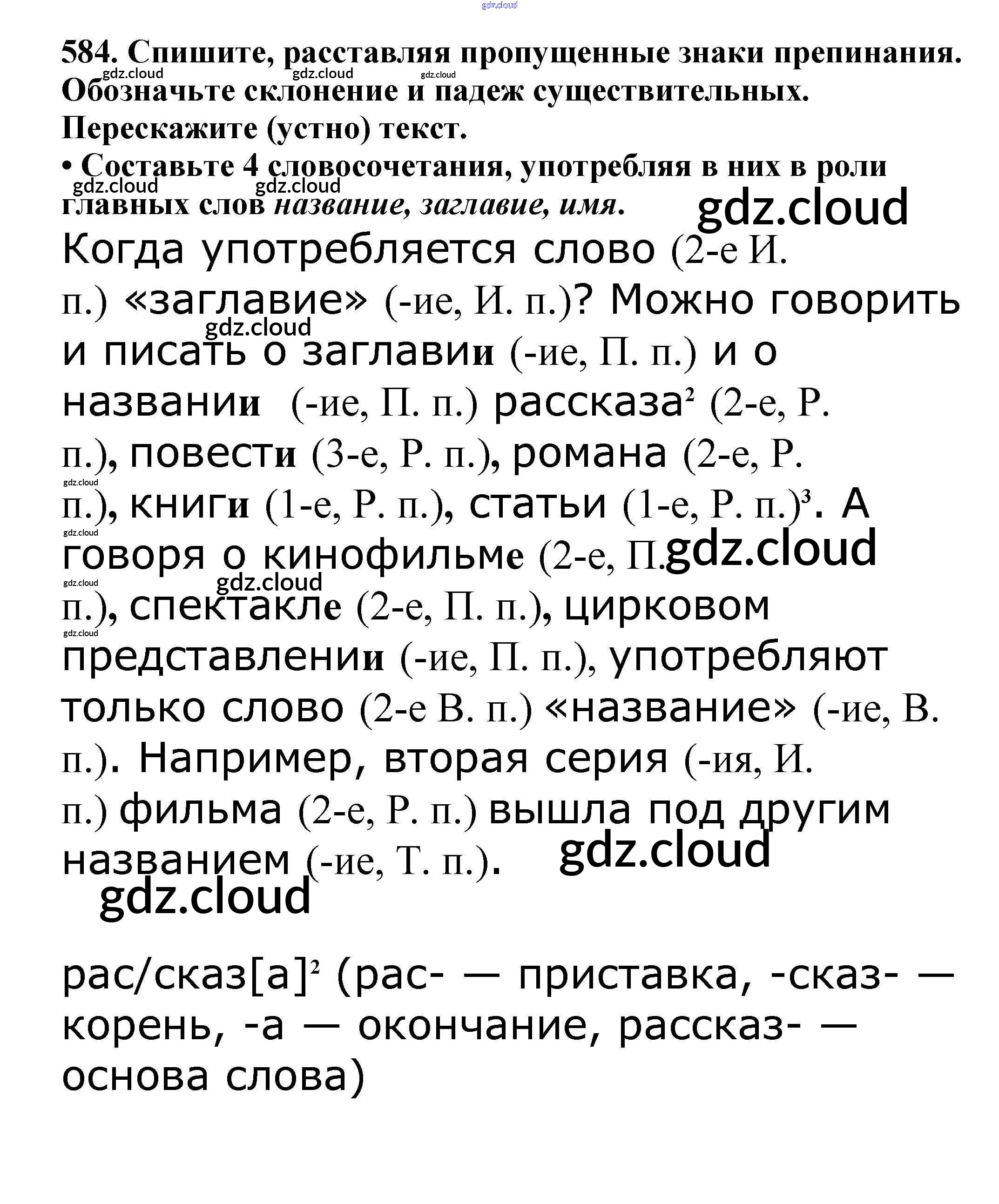 Ответ на задание 584 Учебник Русский язык за 5 (пятый) класс Баранов, Ладыженская, Тростенцова, Кулибаба, Григорян 2016, 2019 Часть 1, 2