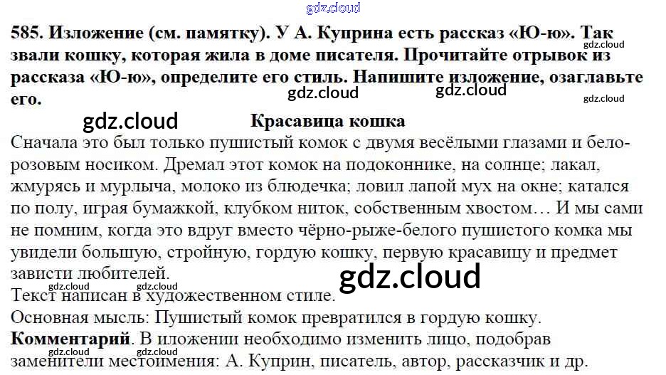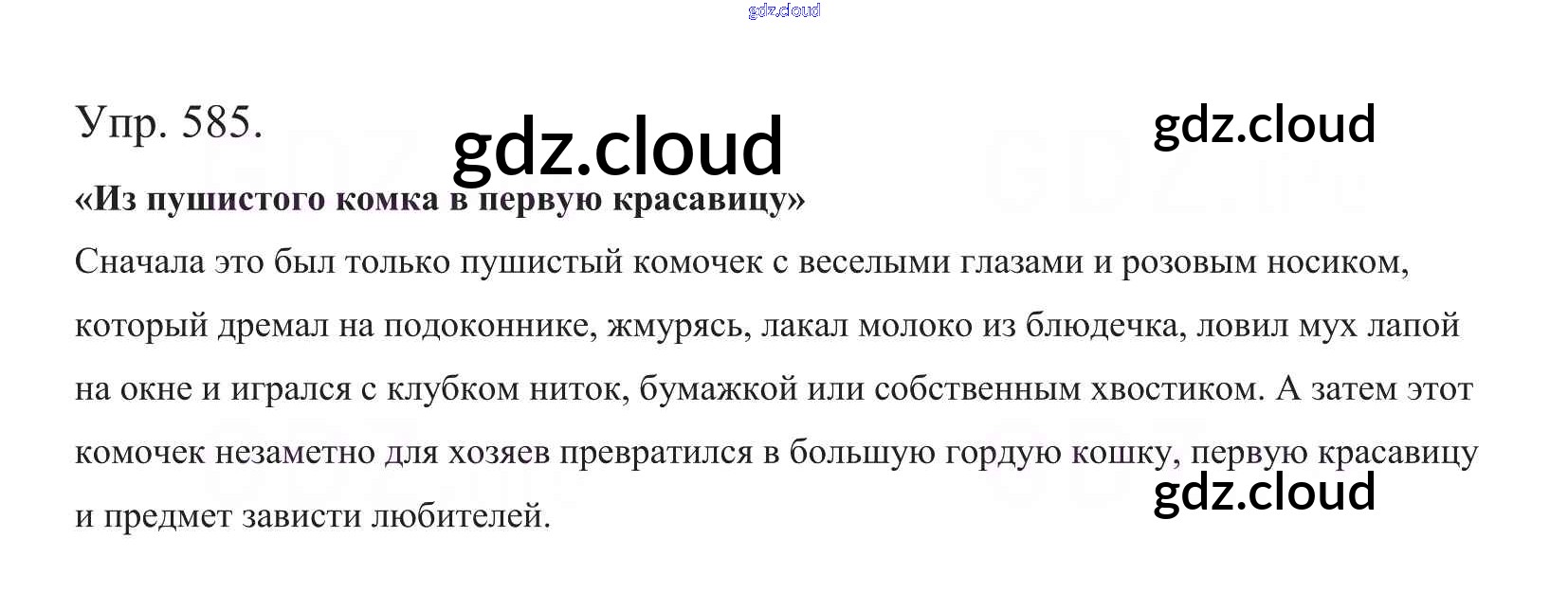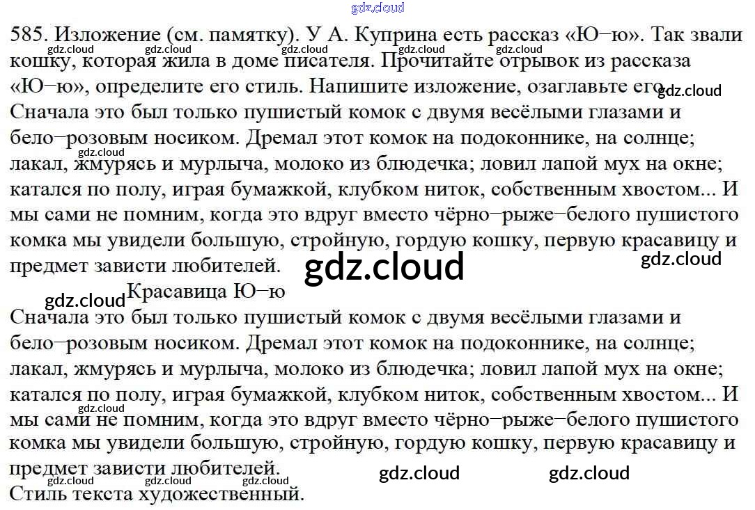 Ответ на задание 585 Учебник Русский язык за 5 (пятый) класс Баранов, Ладыженская, Тростенцова, Кулибаба, Григорян 2016, 2019 Часть 1, 2