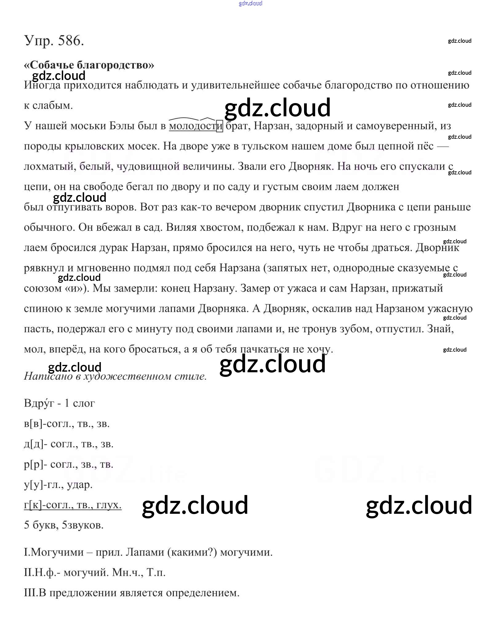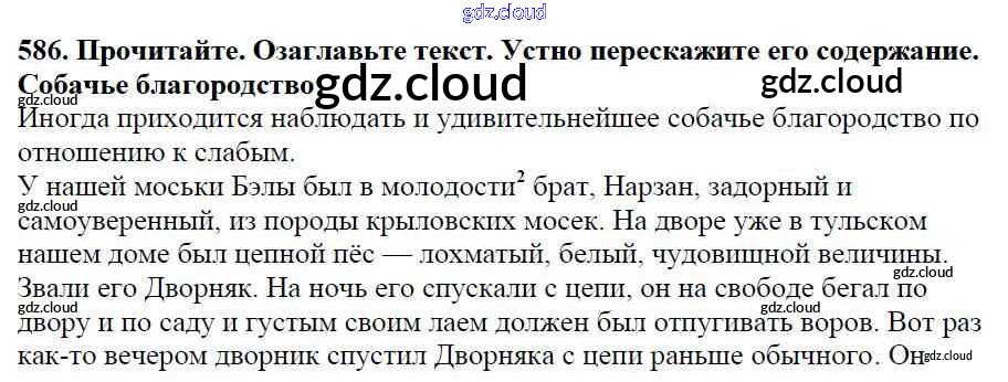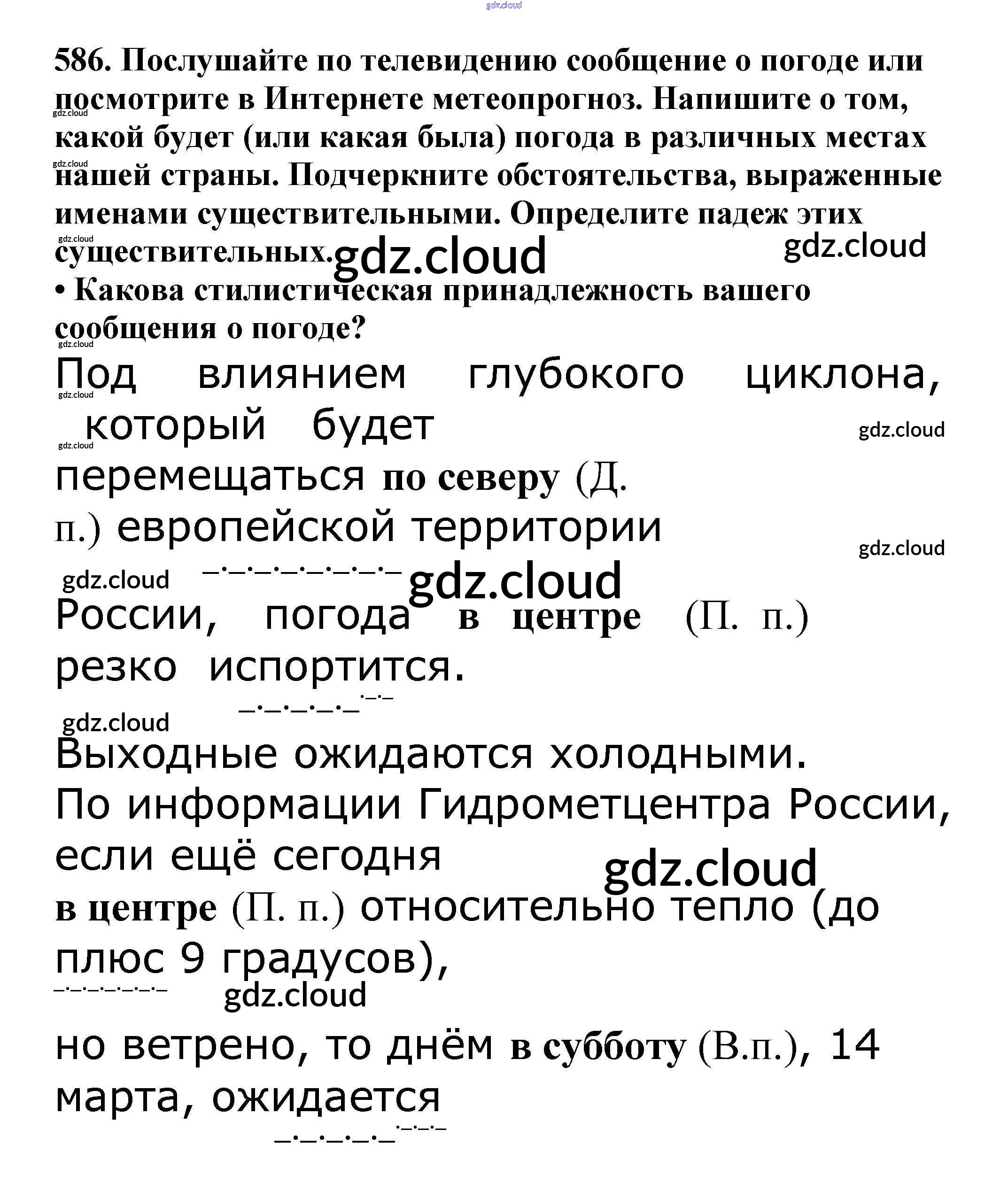 Ответ на задание 586 Учебник Русский язык за 5 (пятый) класс Баранов, Ладыженская, Тростенцова, Кулибаба, Григорян 2016, 2019 Часть 1, 2
