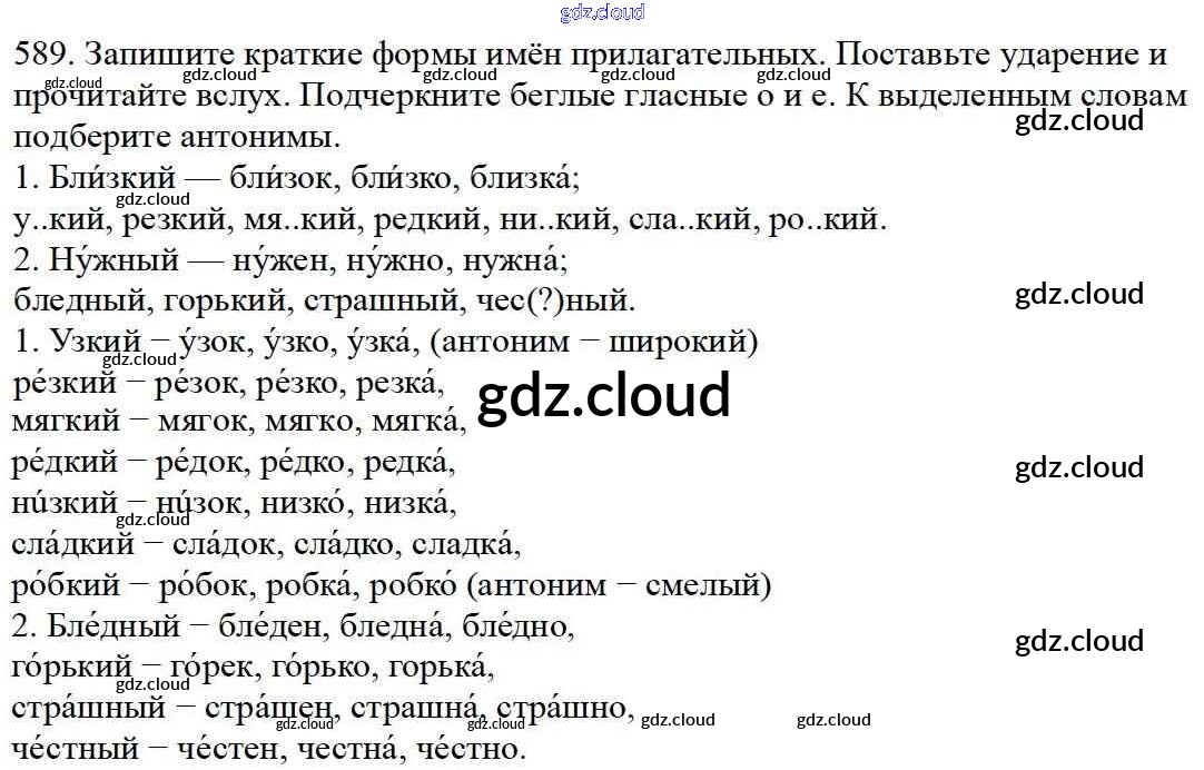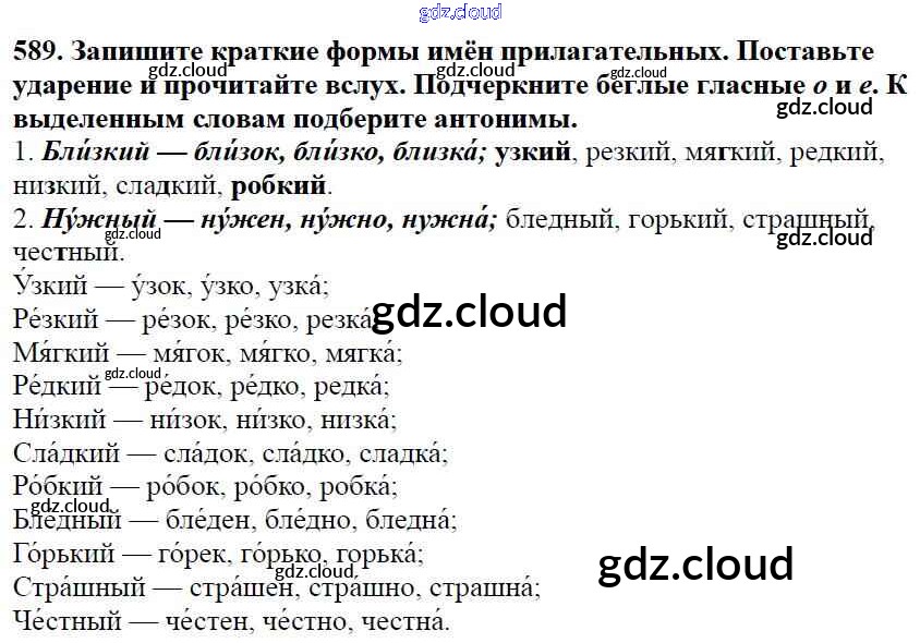 Ответ на задание 589 Учебник Русский язык за 5 (пятый) класс Баранов, Ладыженская, Тростенцова, Кулибаба, Григорян 2016, 2019 Часть 1, 2