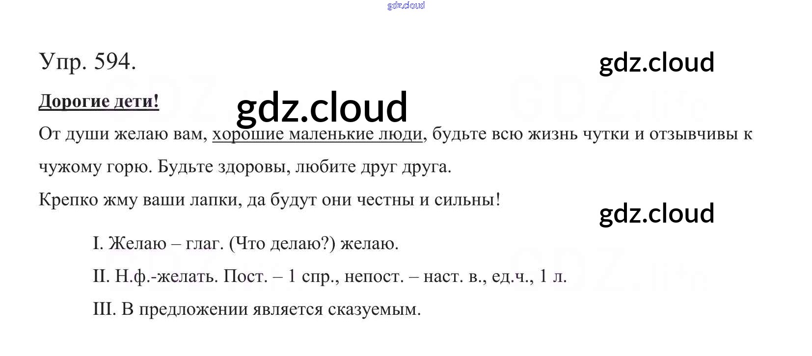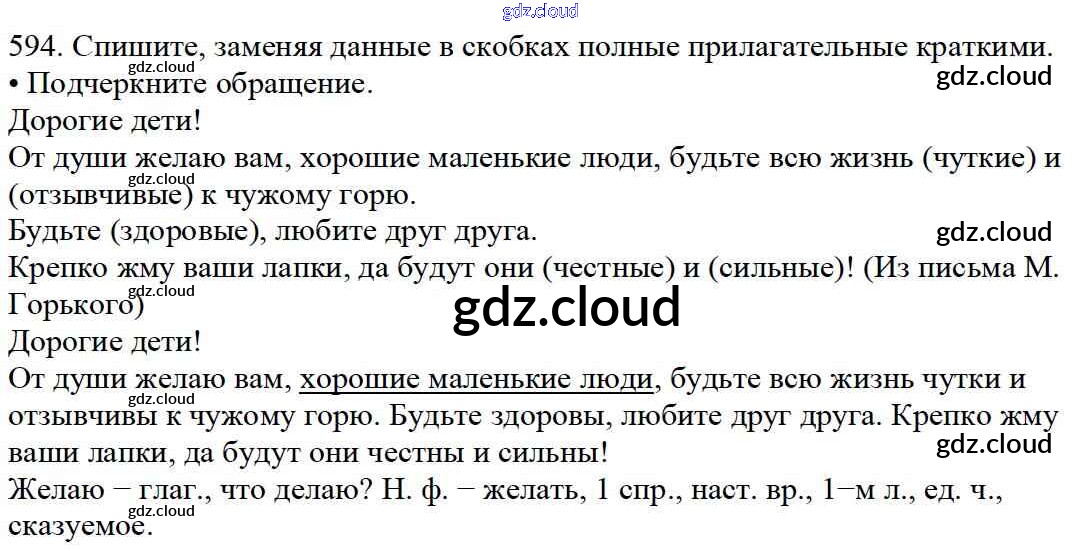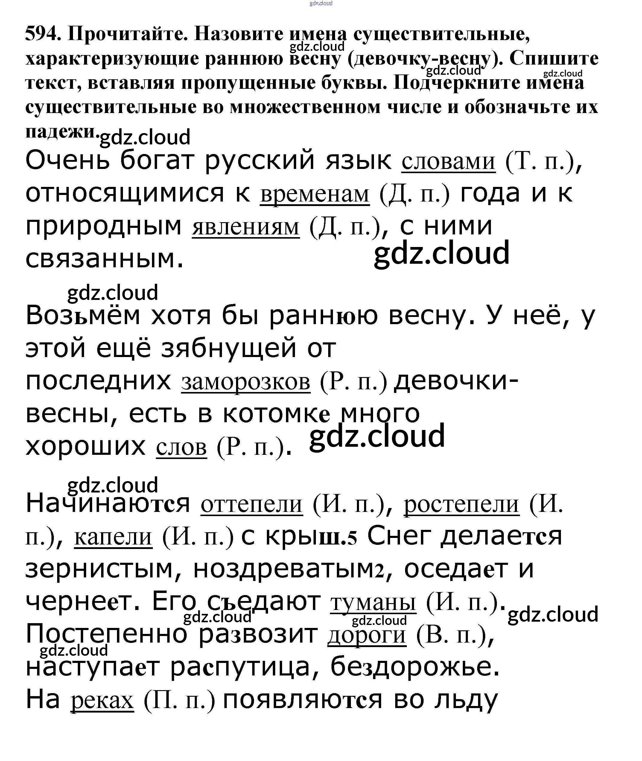 Ответ на задание 594 Учебник Русский язык за 5 (пятый) класс Баранов, Ладыженская, Тростенцова, Кулибаба, Григорян 2016, 2019 Часть 1, 2