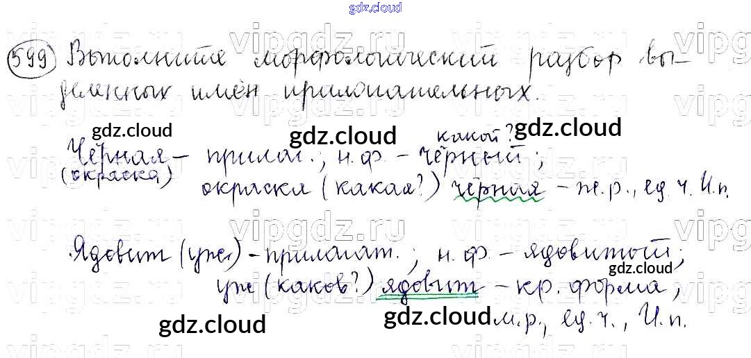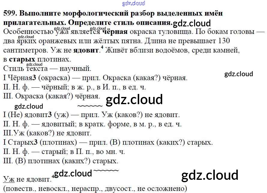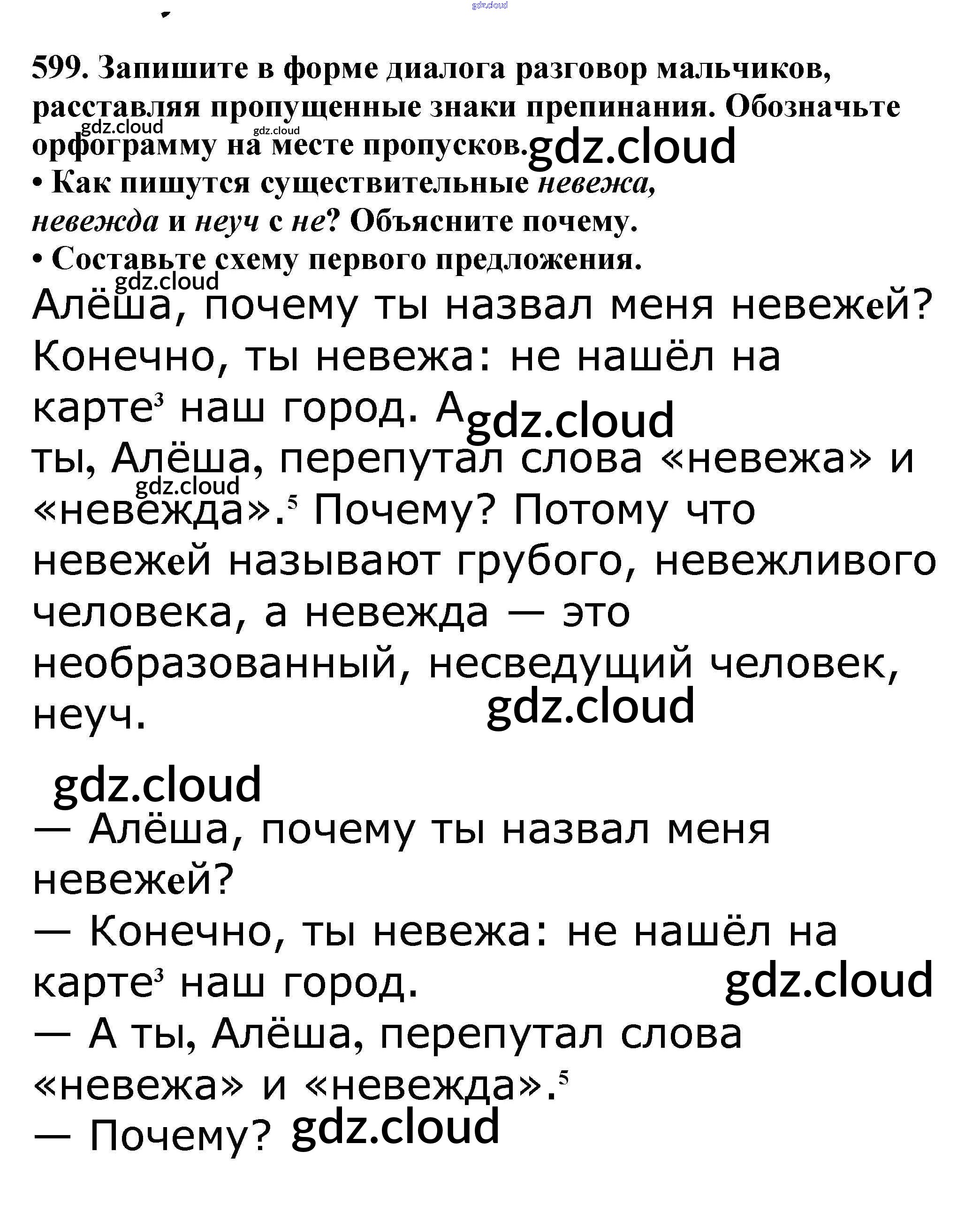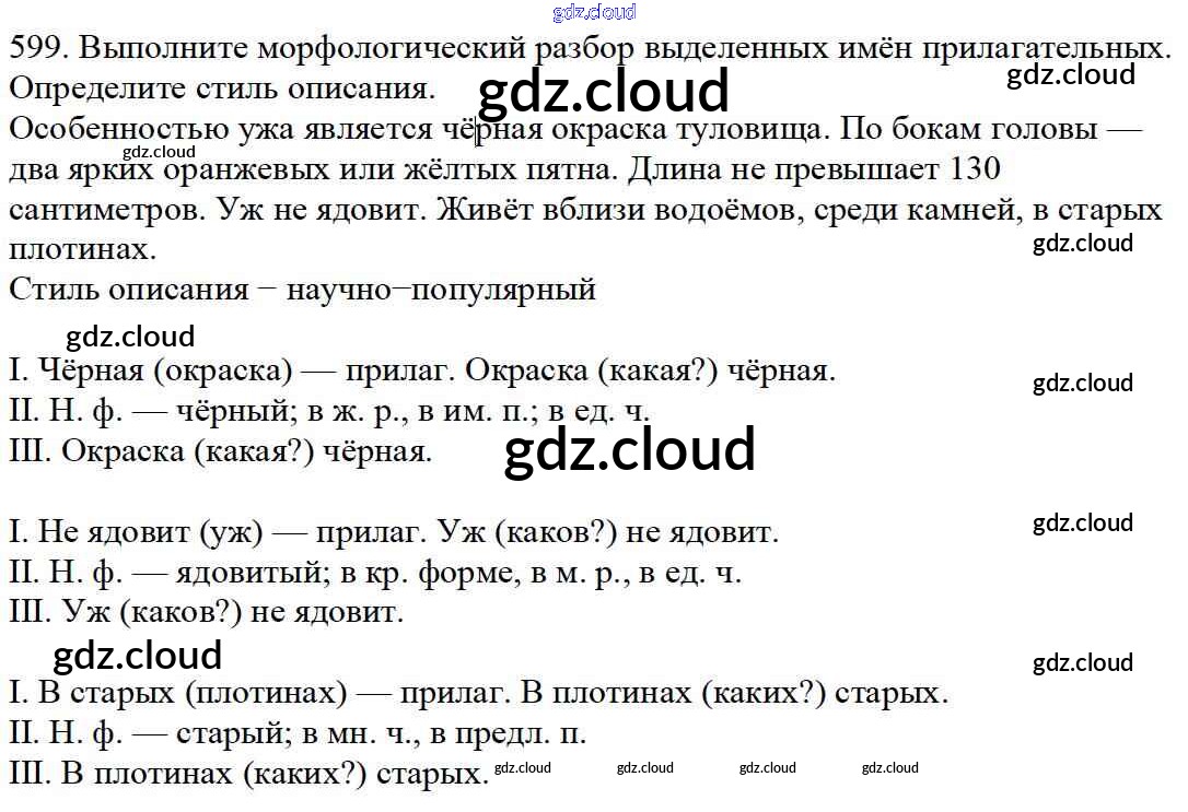 Ответ на задание 599 Учебник Русский язык за 5 (пятый) класс Баранов, Ладыженская, Тростенцова, Кулибаба, Григорян 2016, 2019 Часть 1, 2