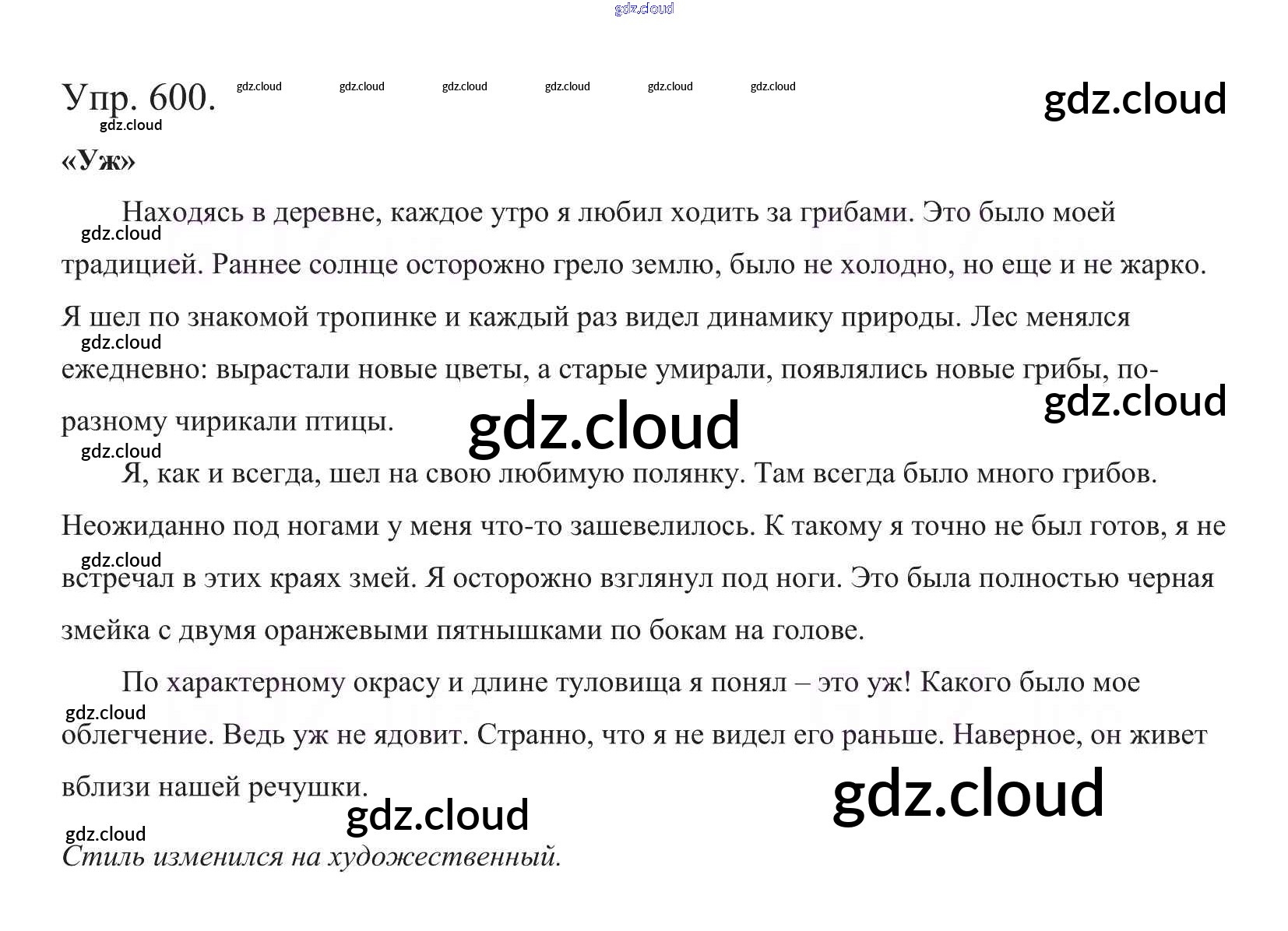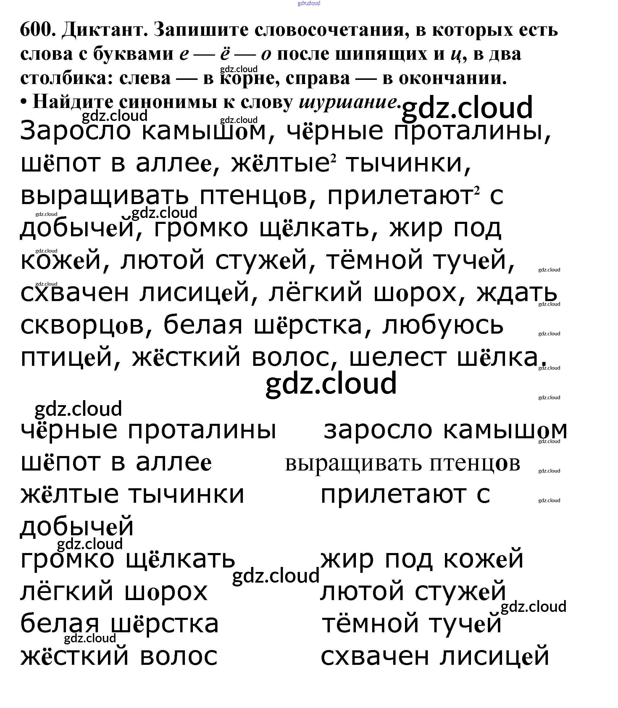Ответ на задание 600 Учебник Русский язык за 5 (пятый) класс Баранов, Ладыженская, Тростенцова, Кулибаба, Григорян 2016, 2019 Часть 1, 2