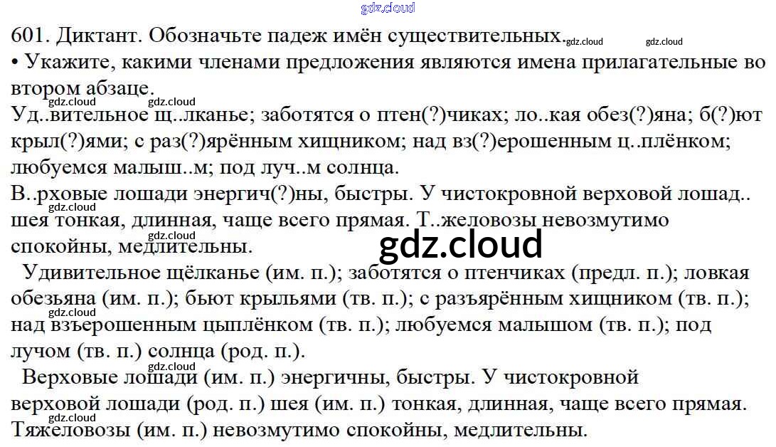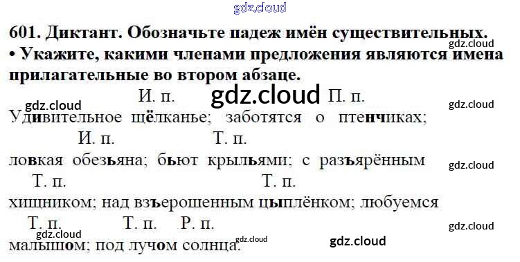 Ответ на задание 601 Учебник Русский язык за 5 (пятый) класс Баранов, Ладыженская, Тростенцова, Кулибаба, Григорян 2016, 2019 Часть 1, 2