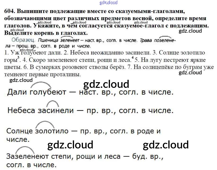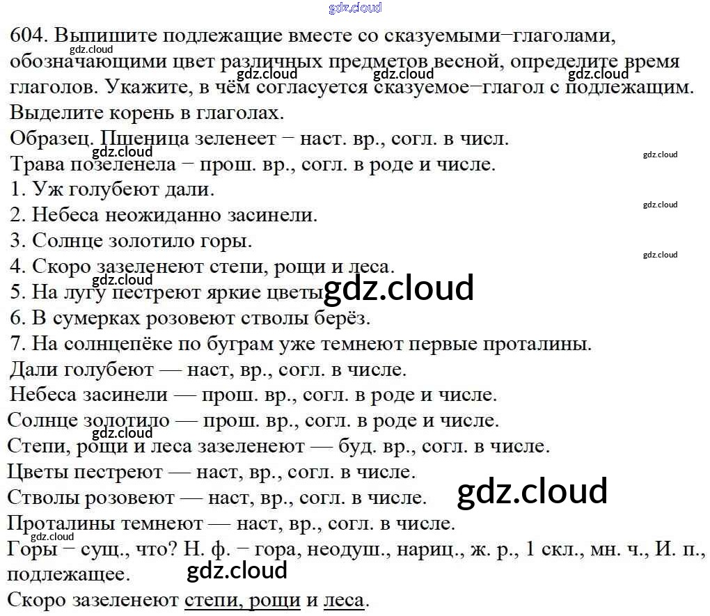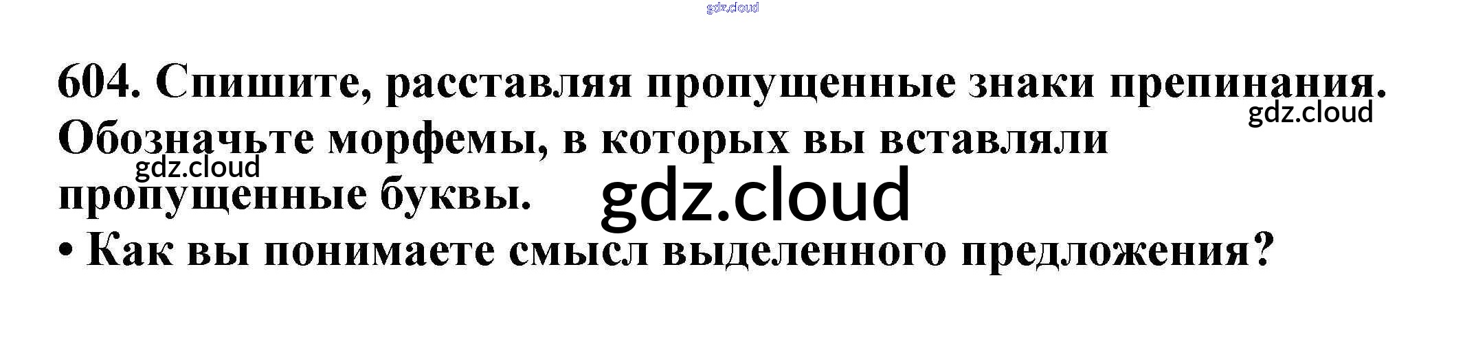 Ответ на задание 604 Учебник Русский язык за 5 (пятый) класс Баранов, Ладыженская, Тростенцова, Кулибаба, Григорян 2016, 2019 Часть 1, 2