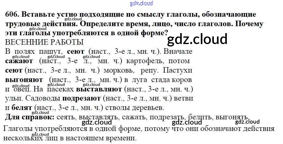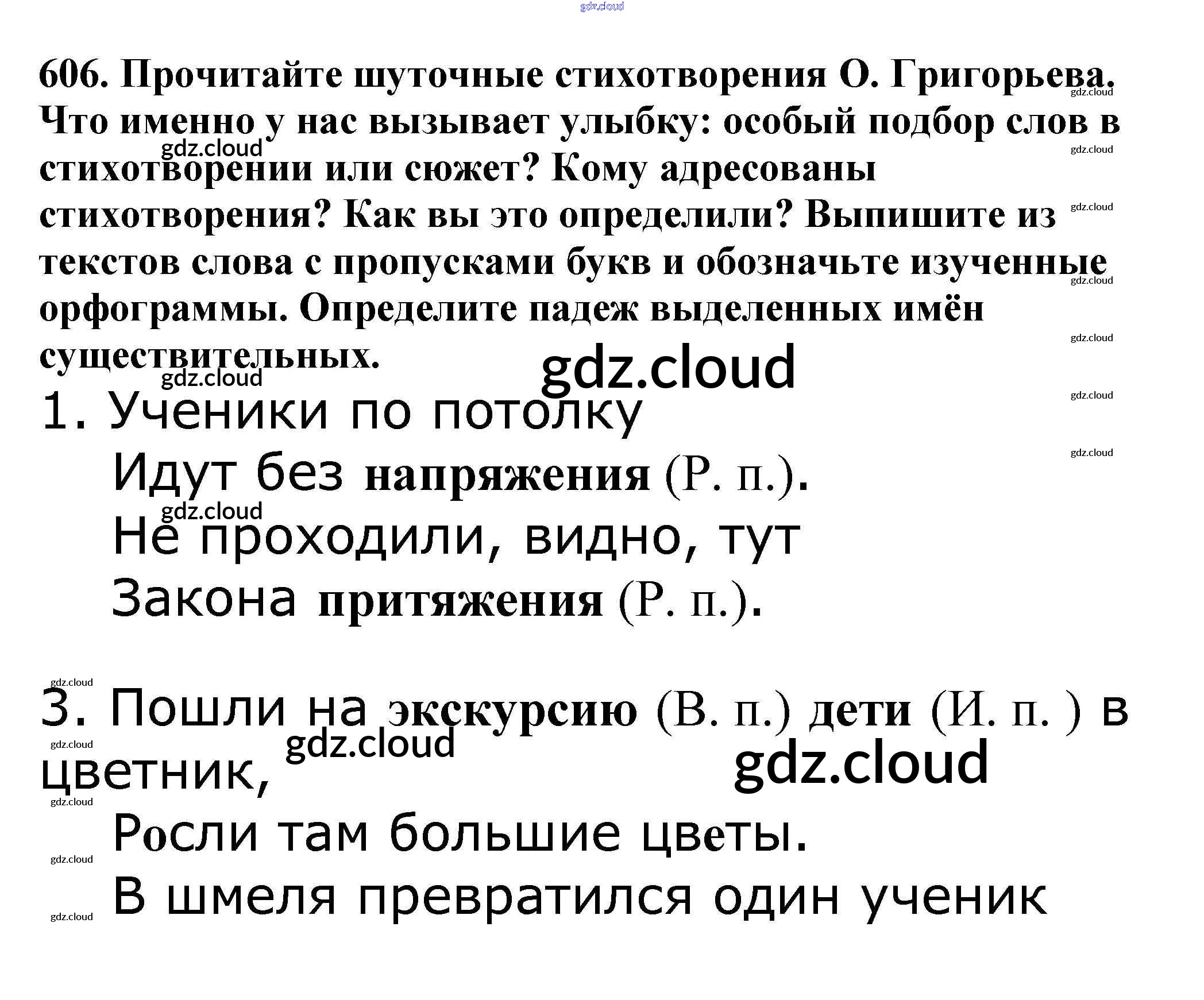 Ответ на задание 606 Учебник Русский язык за 5 (пятый) класс Баранов, Ладыженская, Тростенцова, Кулибаба, Григорян 2016, 2019 Часть 1, 2