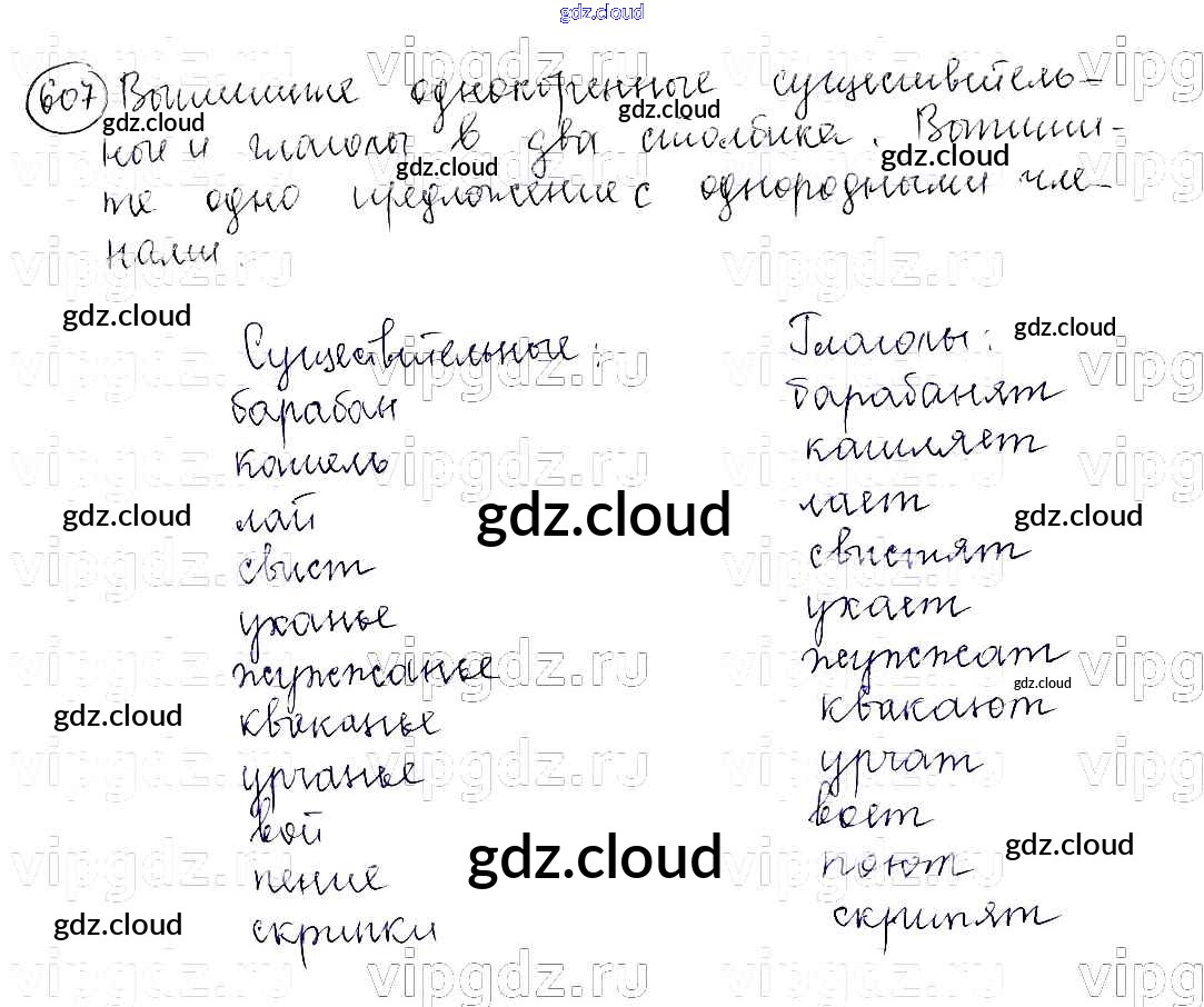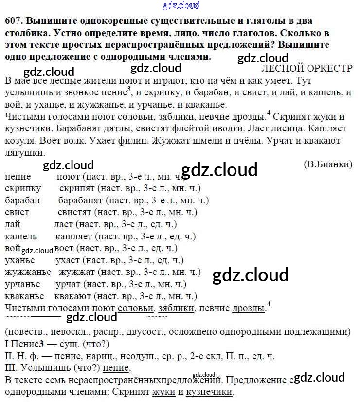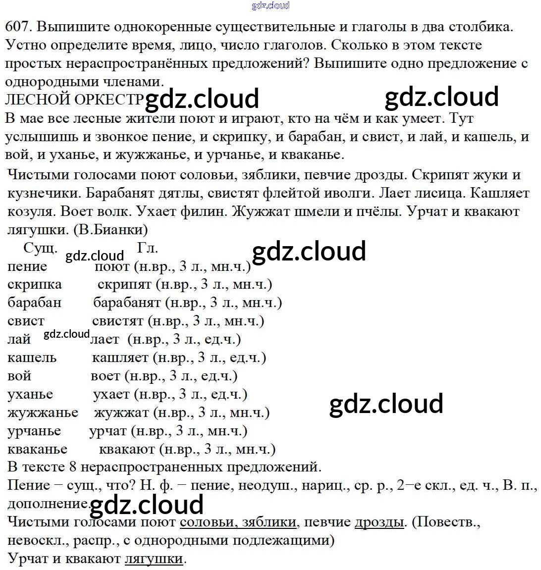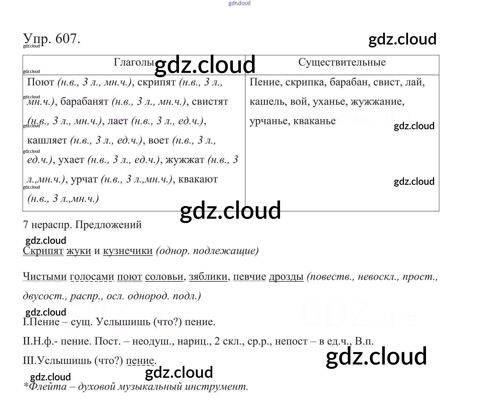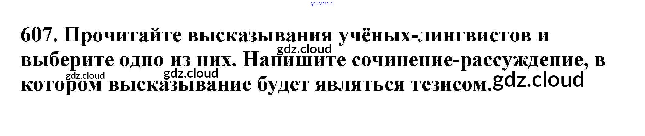 Ответ на задание 607 Учебник Русский язык за 5 (пятый) класс Баранов, Ладыженская, Тростенцова, Кулибаба, Григорян 2016, 2019 Часть 1, 2