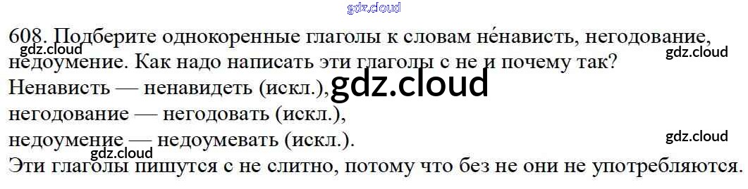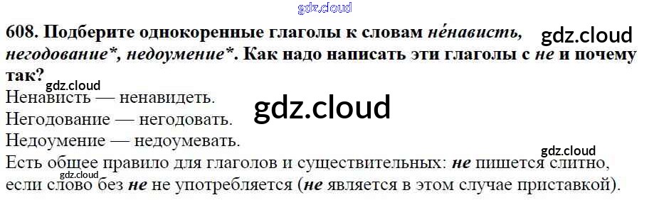 Ответ на задание 608 Учебник Русский язык за 5 (пятый) класс Баранов, Ладыженская, Тростенцова, Кулибаба, Григорян 2016, 2019 Часть 1, 2