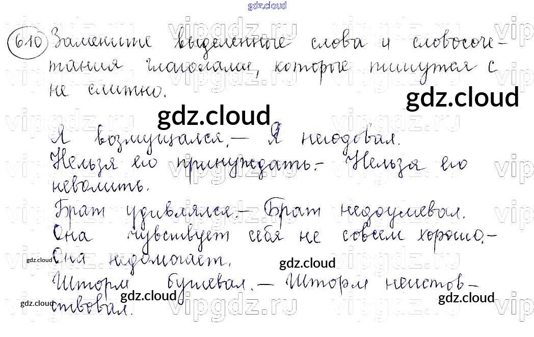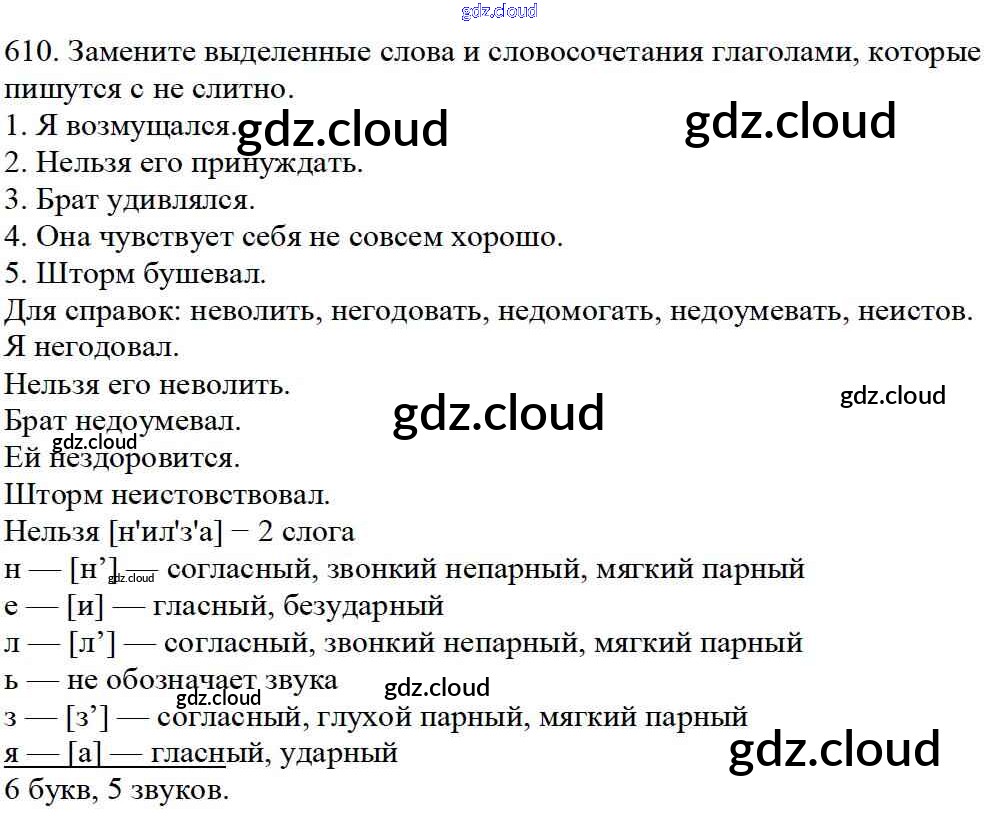 Ответ на задание 610 Учебник Русский язык за 5 (пятый) класс Баранов, Ладыженская, Тростенцова, Кулибаба, Григорян 2016, 2019 Часть 1, 2