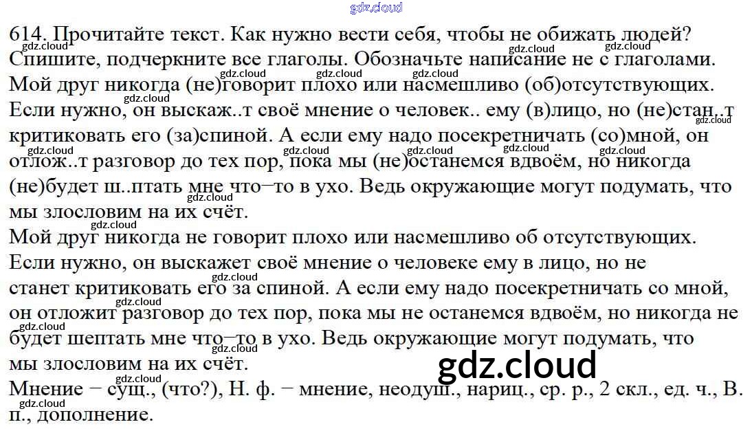 Ответ на задание 614 Учебник Русский язык за 5 (пятый) класс Баранов, Ладыженская, Тростенцова, Кулибаба, Григорян 2016, 2019 Часть 1, 2