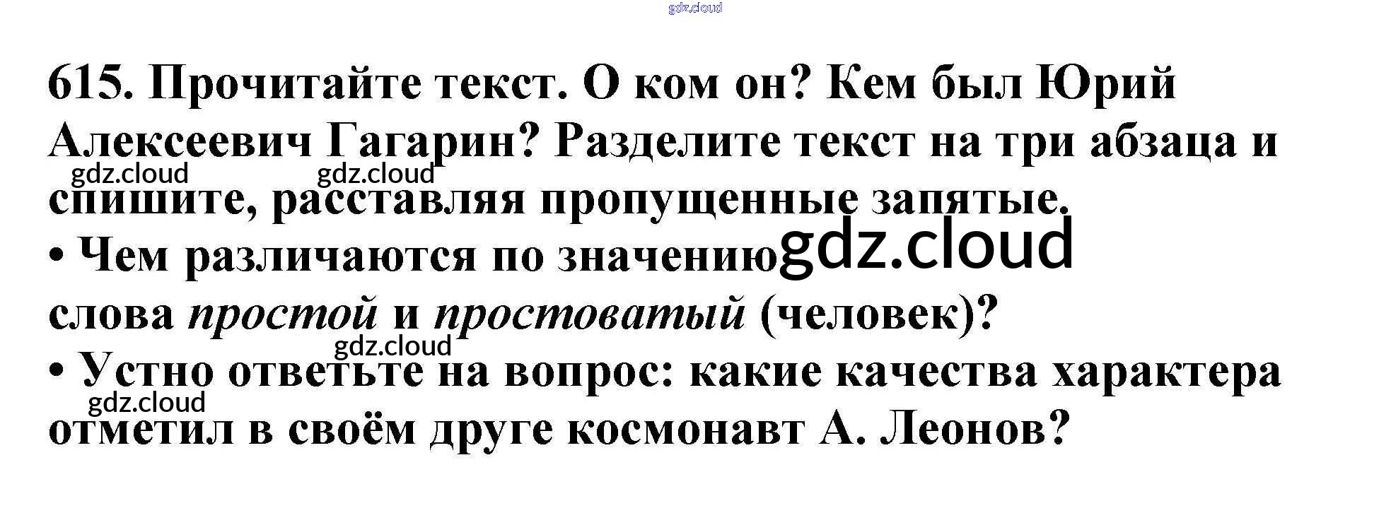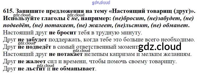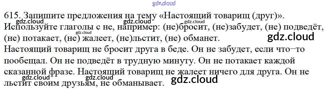 Ответ на задание 615 Учебник Русский язык за 5 (пятый) класс Баранов, Ладыженская, Тростенцова, Кулибаба, Григорян 2016, 2019 Часть 1, 2
