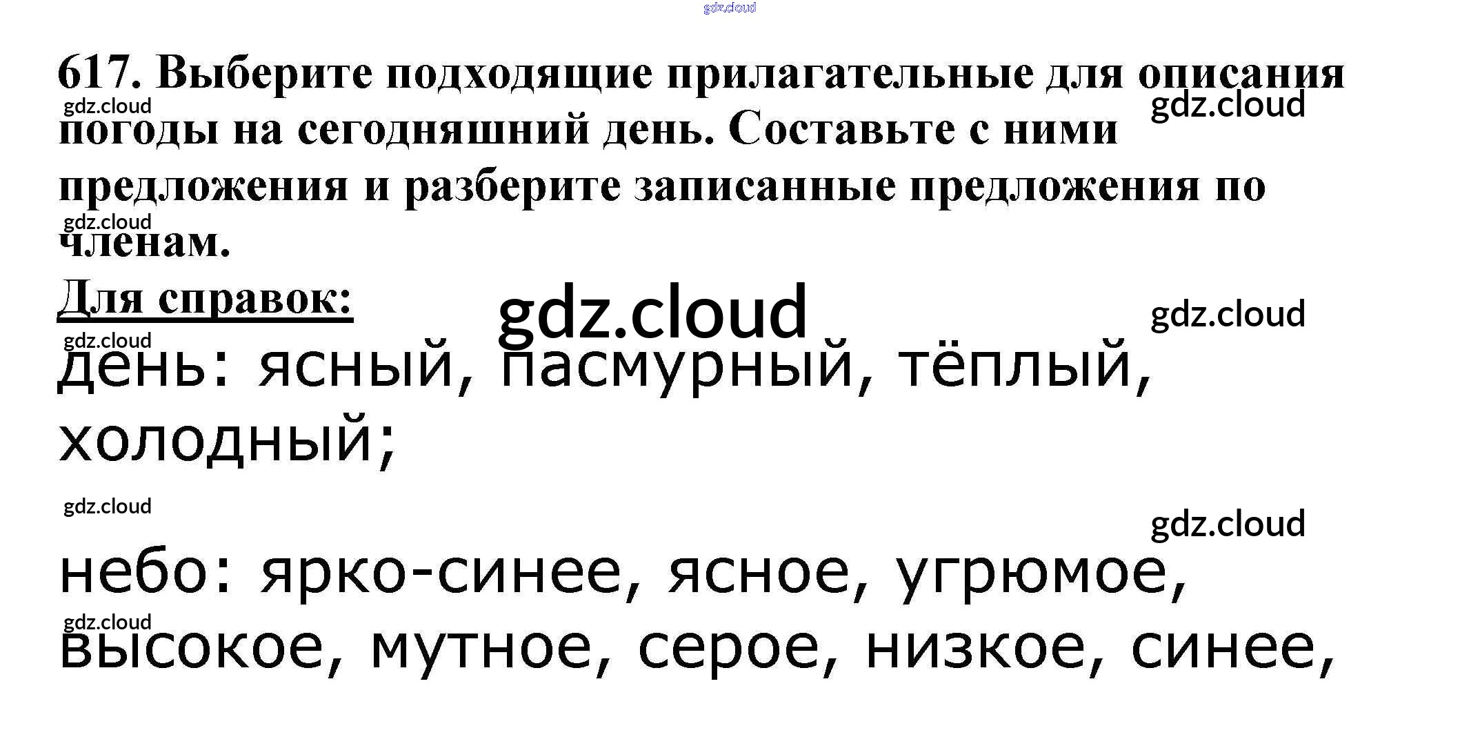 Ответ на задание 617 Учебник Русский язык за 5 (пятый) класс Баранов, Ладыженская, Тростенцова, Кулибаба, Григорян 2016, 2019 Часть 1, 2