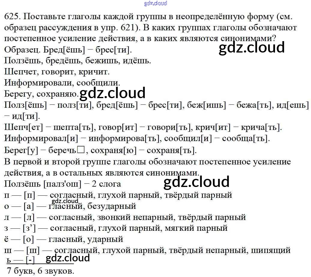 Ответ на задание 625 Учебник Русский язык за 5 (пятый) класс Баранов, Ладыженская, Тростенцова, Кулибаба, Григорян 2016, 2019 Часть 1, 2