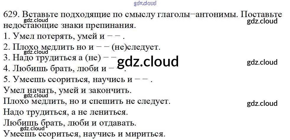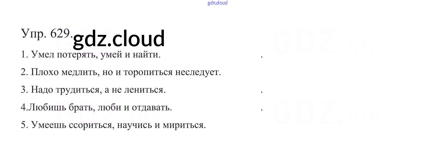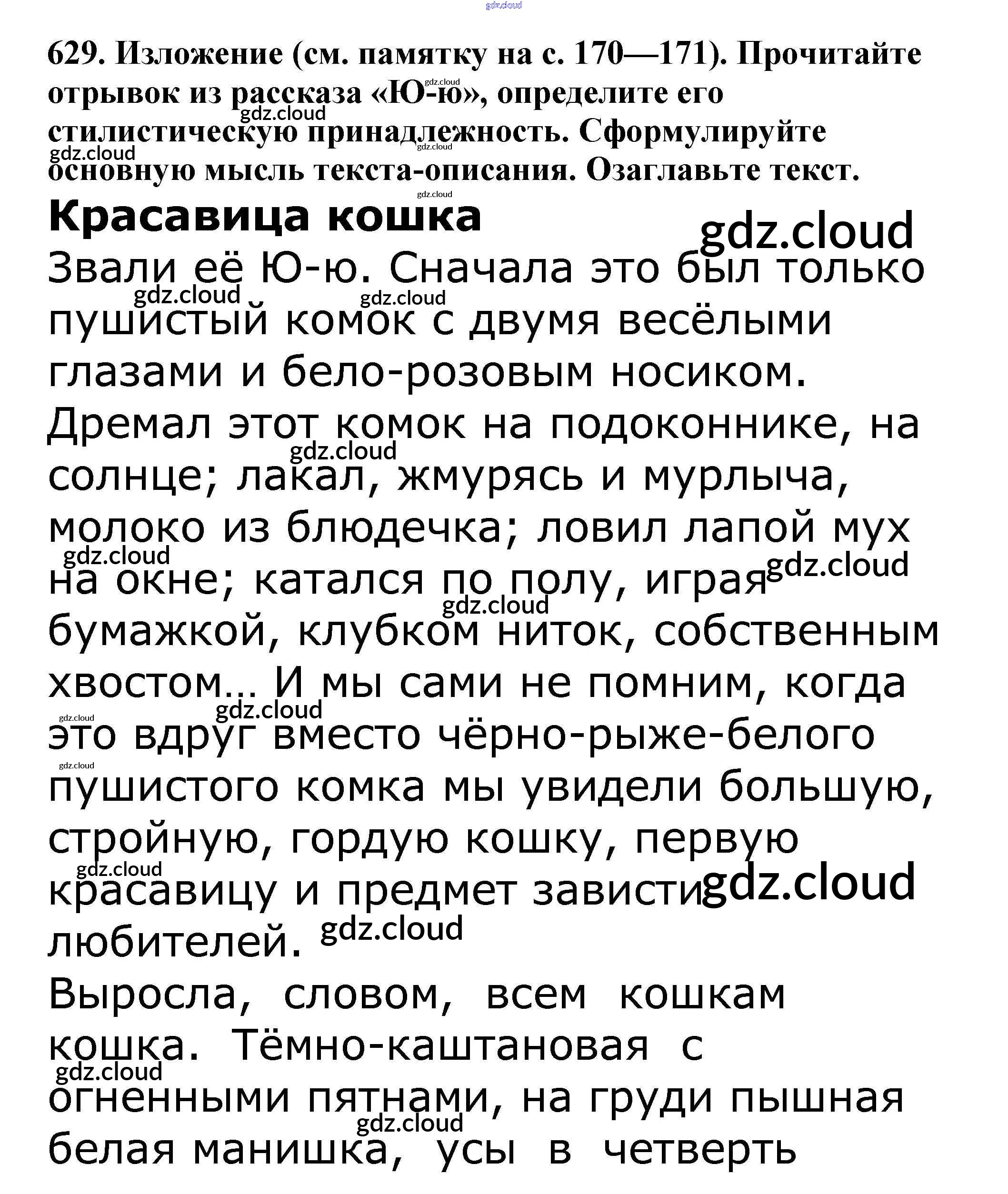Ответ на задание 629 Учебник Русский язык за 5 (пятый) класс Баранов, Ладыженская, Тростенцова, Кулибаба, Григорян 2016, 2019 Часть 1, 2