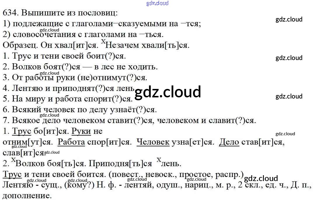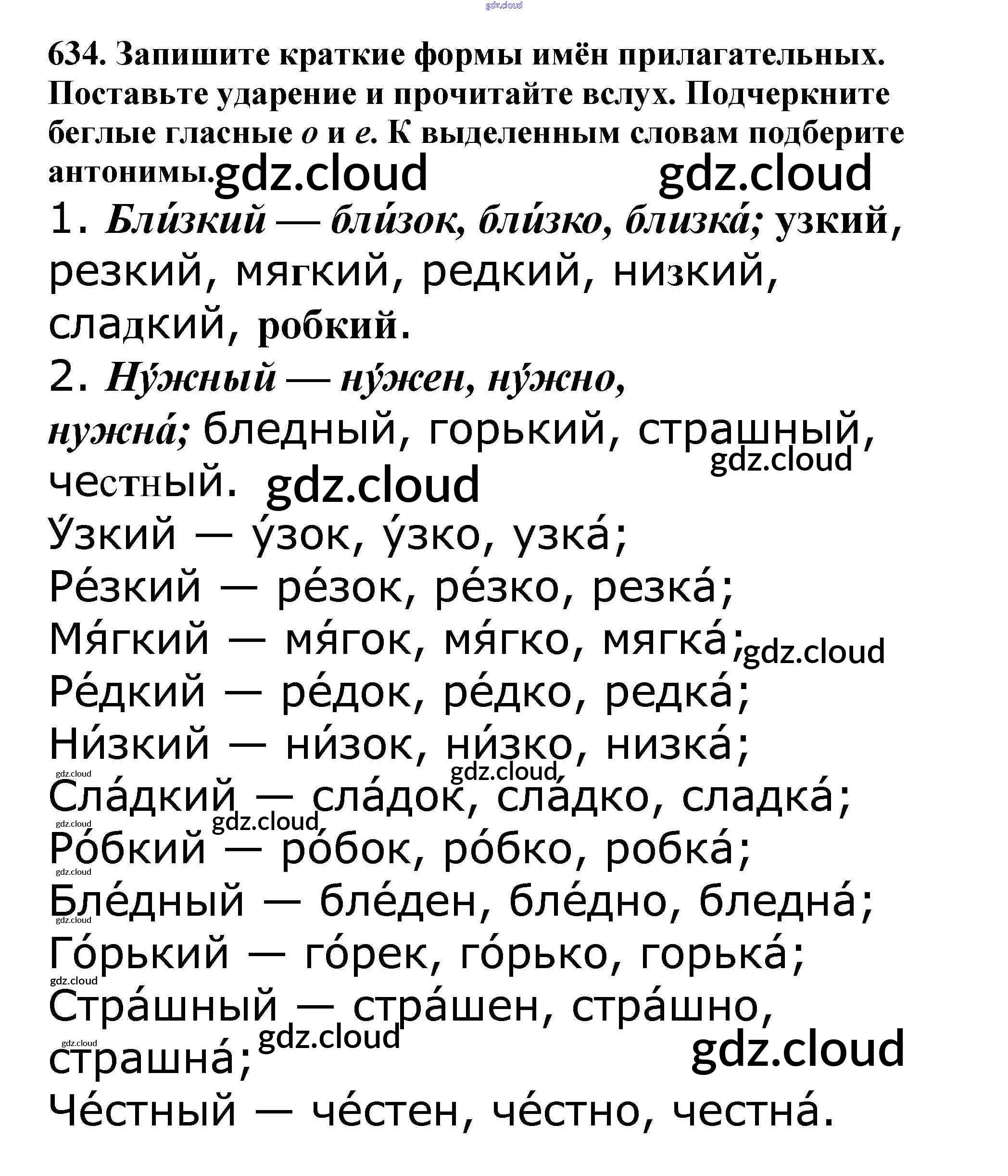 Ответ на задание 634 Учебник Русский язык за 5 (пятый) класс Баранов, Ладыженская, Тростенцова, Кулибаба, Григорян 2016, 2019 Часть 1, 2