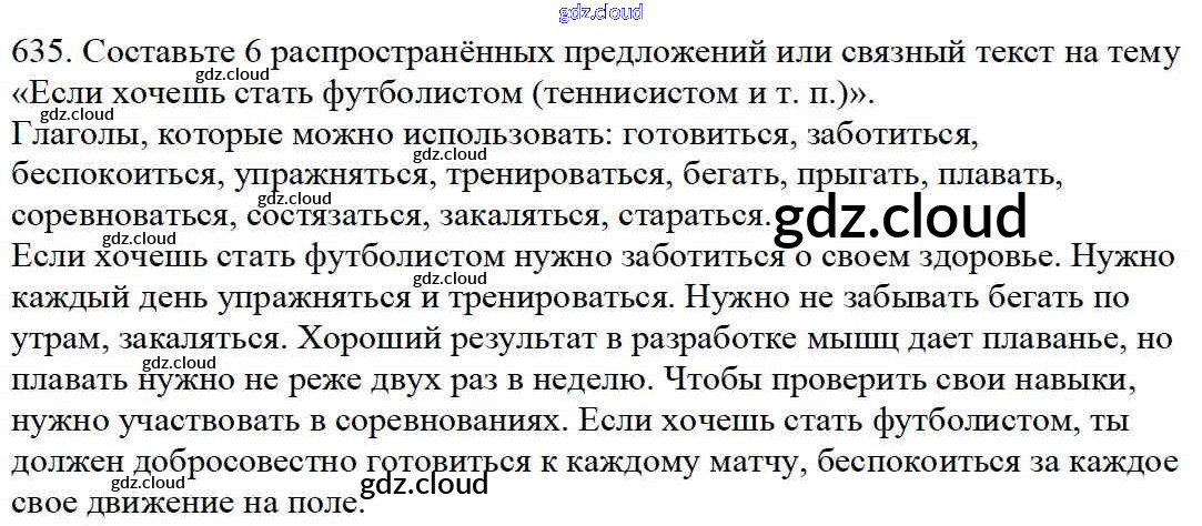 Ответ на задание 635 Учебник Русский язык за 5 (пятый) класс Баранов, Ладыженская, Тростенцова, Кулибаба, Григорян 2016, 2019 Часть 1, 2
