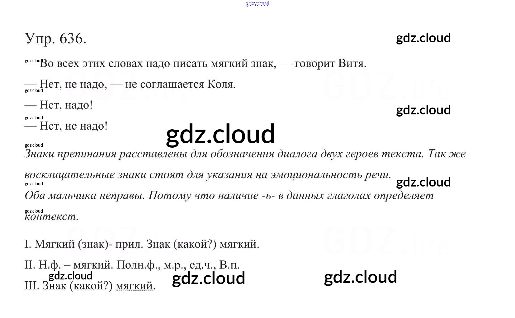 Ответ на задание 636 Учебник Русский язык за 5 (пятый) класс Баранов, Ладыженская, Тростенцова, Кулибаба, Григорян 2016, 2019 Часть 1, 2
