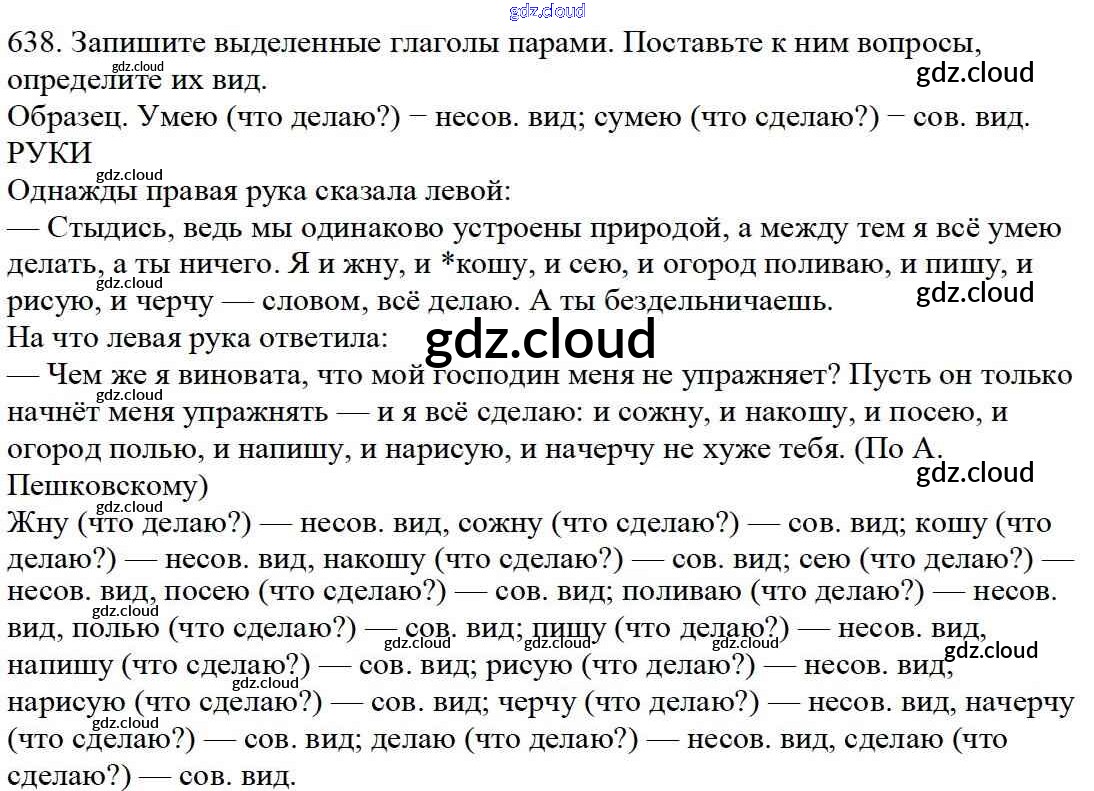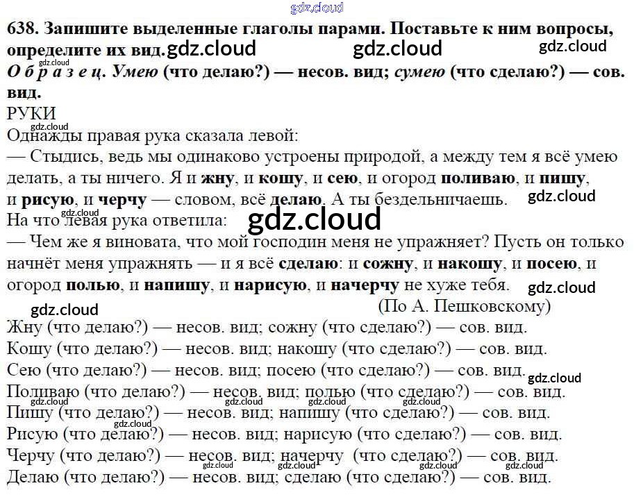 Ответ на задание 638 Учебник Русский язык за 5 (пятый) класс Баранов, Ладыженская, Тростенцова, Кулибаба, Григорян 2016, 2019 Часть 1, 2