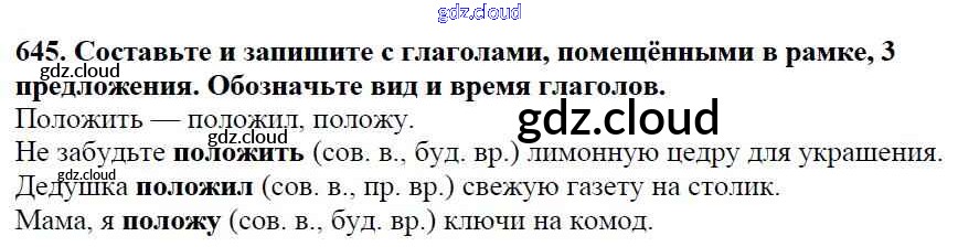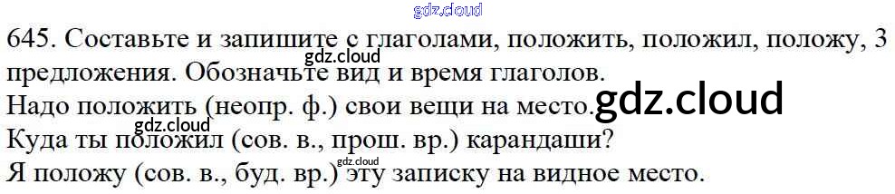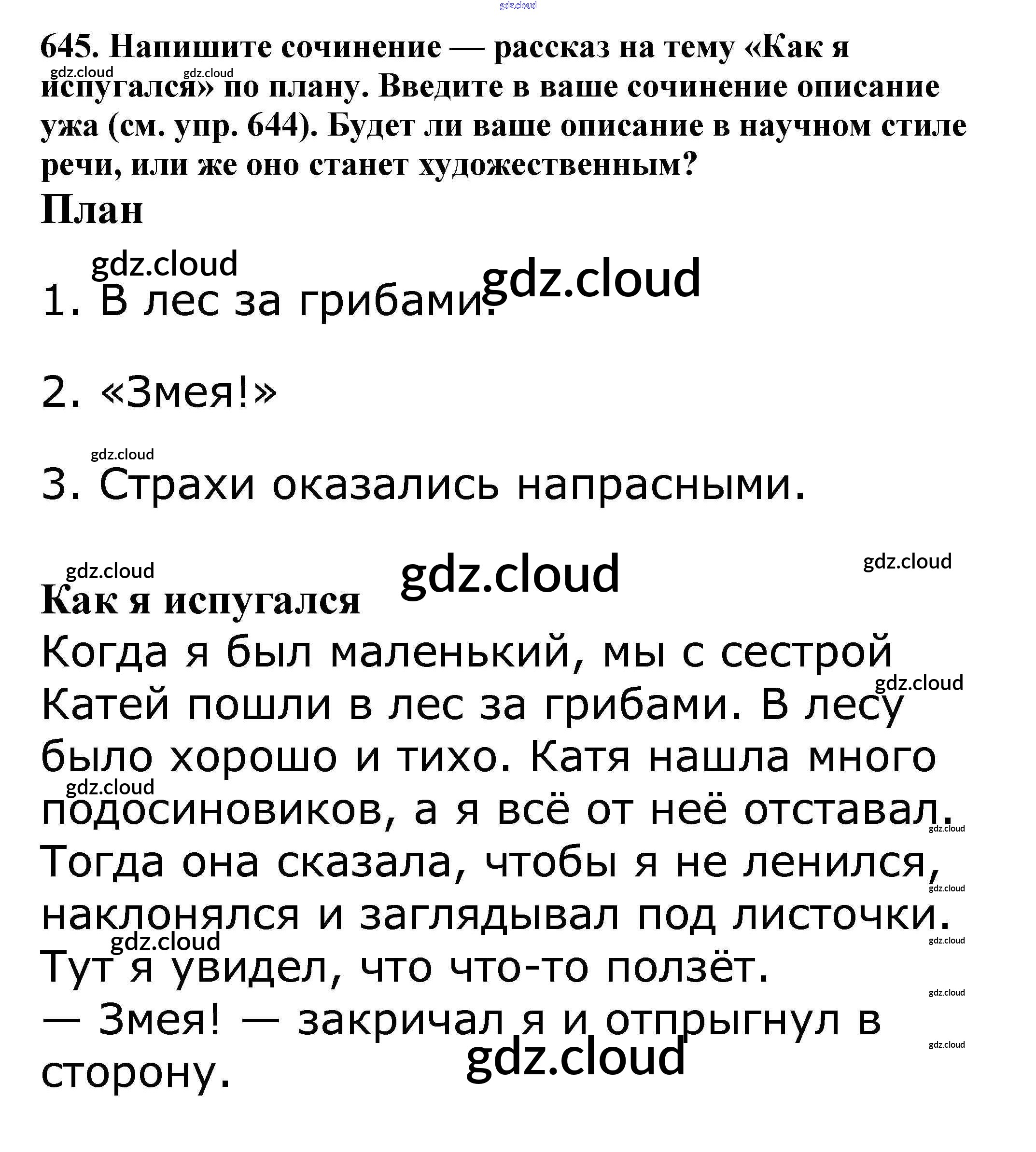 Ответ на задание 645 Учебник Русский язык за 5 (пятый) класс Баранов, Ладыженская, Тростенцова, Кулибаба, Григорян 2016, 2019 Часть 1, 2