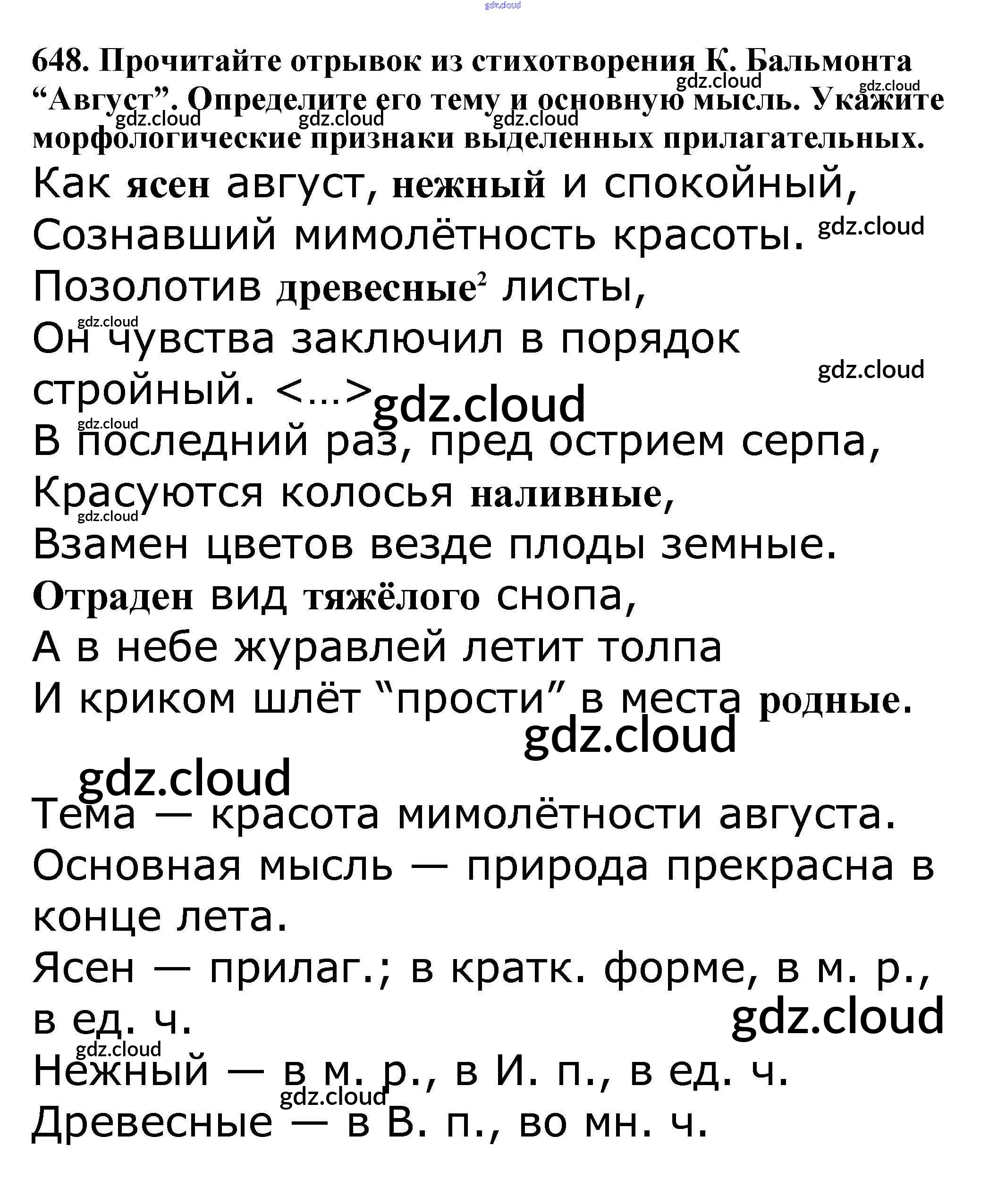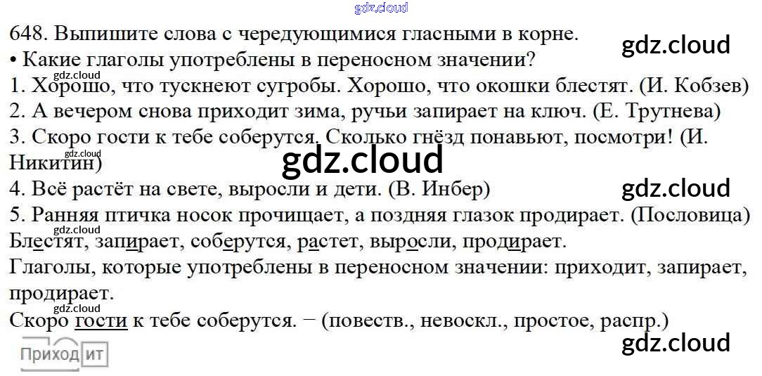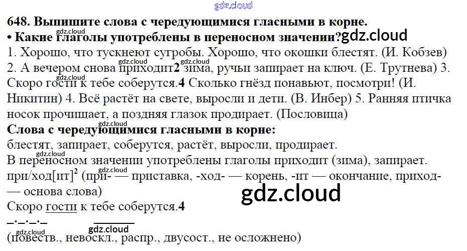 Ответ на задание 648 Учебник Русский язык за 5 (пятый) класс Баранов, Ладыженская, Тростенцова, Кулибаба, Григорян 2016, 2019 Часть 1, 2