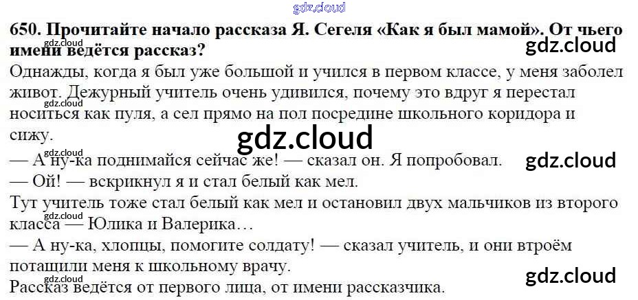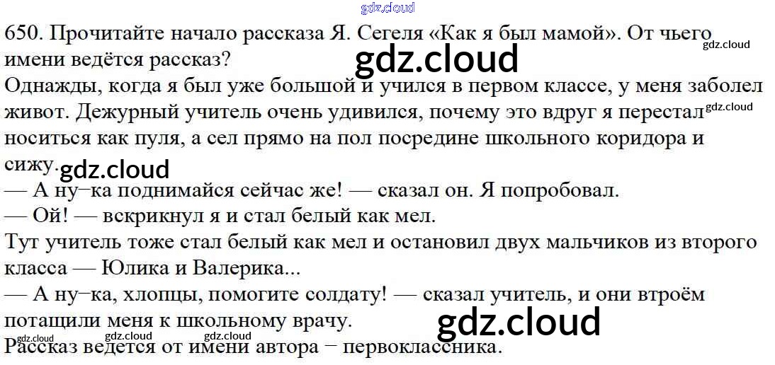 Ответ на задание 650 Учебник Русский язык за 5 (пятый) класс Баранов, Ладыженская, Тростенцова, Кулибаба, Григорян 2016, 2019 Часть 1, 2