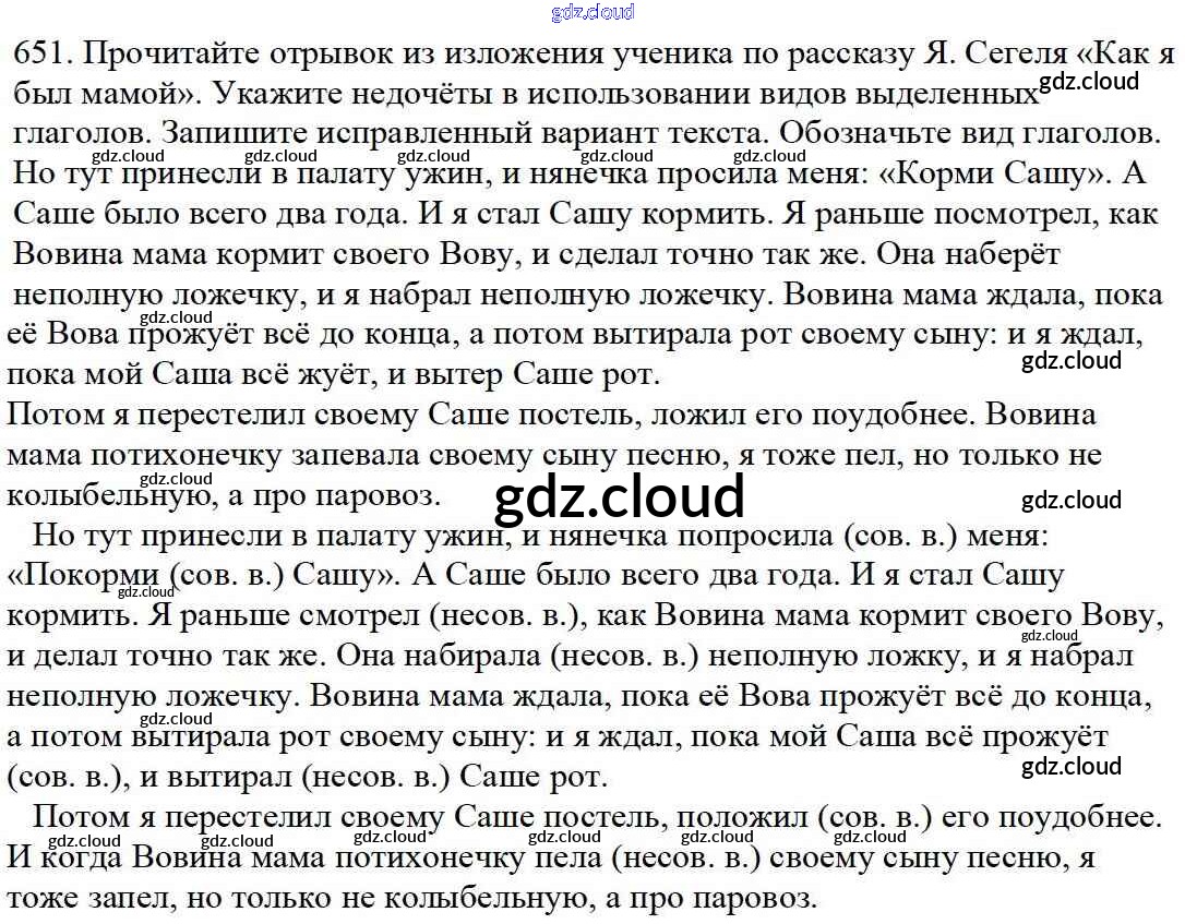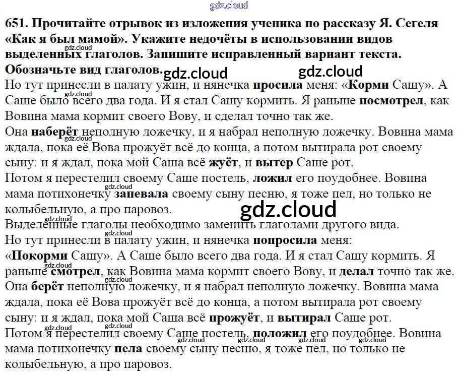 Ответ на задание 651 Учебник Русский язык за 5 (пятый) класс Баранов, Ладыженская, Тростенцова, Кулибаба, Григорян 2016, 2019 Часть 1, 2