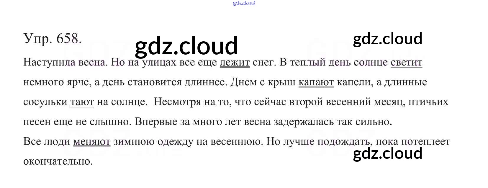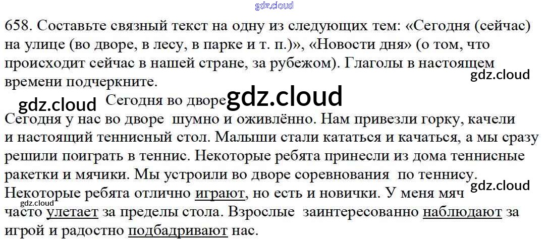 Ответ на задание 658 Учебник Русский язык за 5 (пятый) класс Баранов, Ладыженская, Тростенцова, Кулибаба, Григорян 2016, 2019 Часть 1, 2