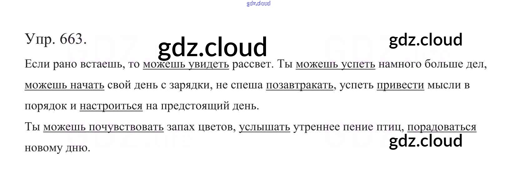 Ответ на задание 663 Учебник Русский язык за 5 (пятый) класс Баранов, Ладыженская, Тростенцова, Кулибаба, Григорян 2016, 2019 Часть 1, 2