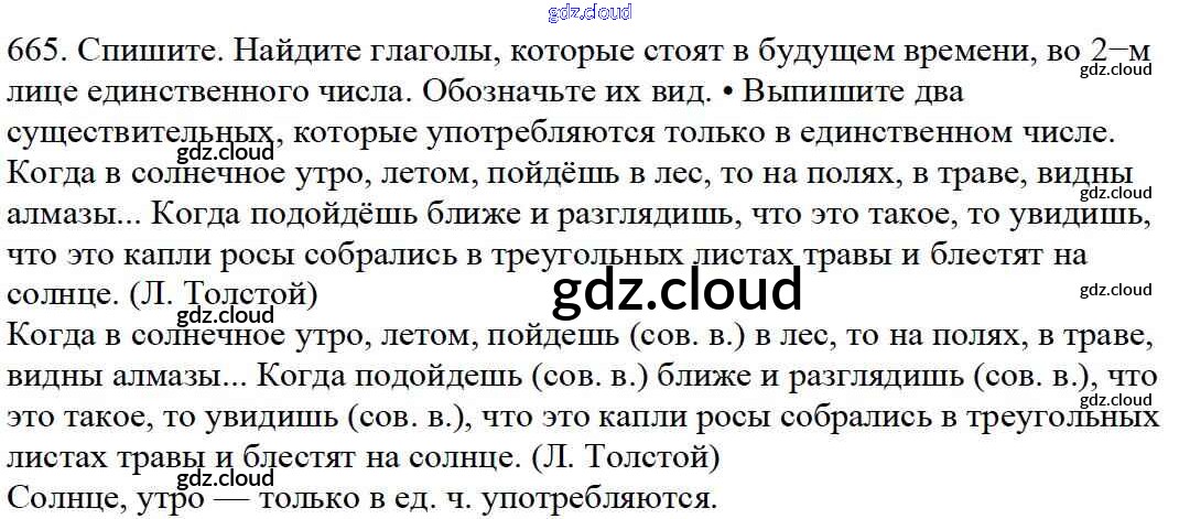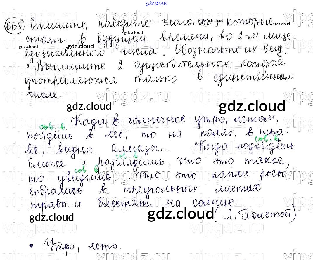 Ответ на задание 665 Учебник Русский язык за 5 (пятый) класс Баранов, Ладыженская, Тростенцова, Кулибаба, Григорян 2016, 2019 Часть 1, 2