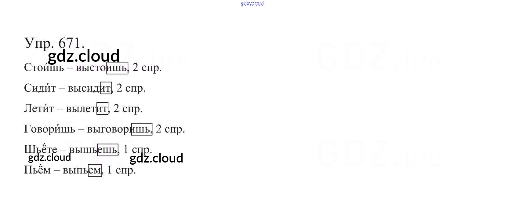 Ответ на задание 671 Учебник Русский язык за 5 (пятый) класс Баранов, Ладыженская, Тростенцова, Кулибаба, Григорян 2016, 2019 Часть 1, 2