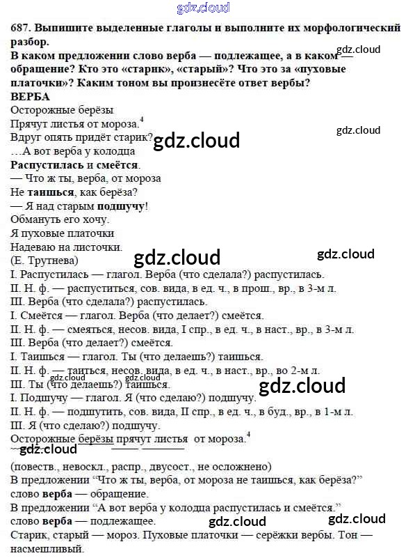 Ответ на задание 687 Учебник Русский язык за 5 (пятый) класс Баранов, Ладыженская, Тростенцова, Кулибаба, Григорян 2016, 2019 Часть 1, 2