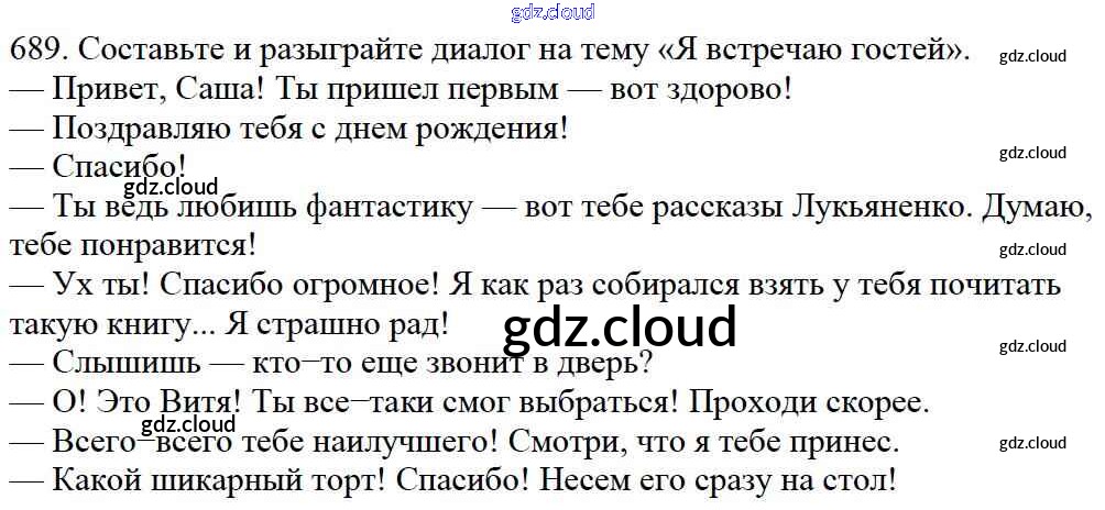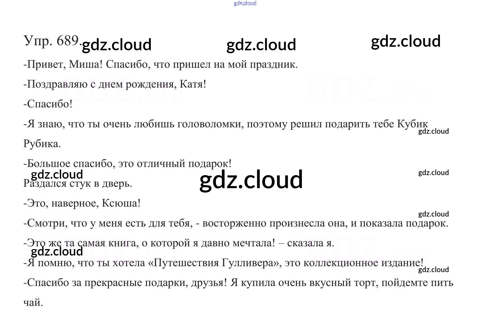 Ответ на задание 689 Учебник Русский язык за 5 (пятый) класс Баранов, Ладыженская, Тростенцова, Кулибаба, Григорян 2016, 2019 Часть 1, 2