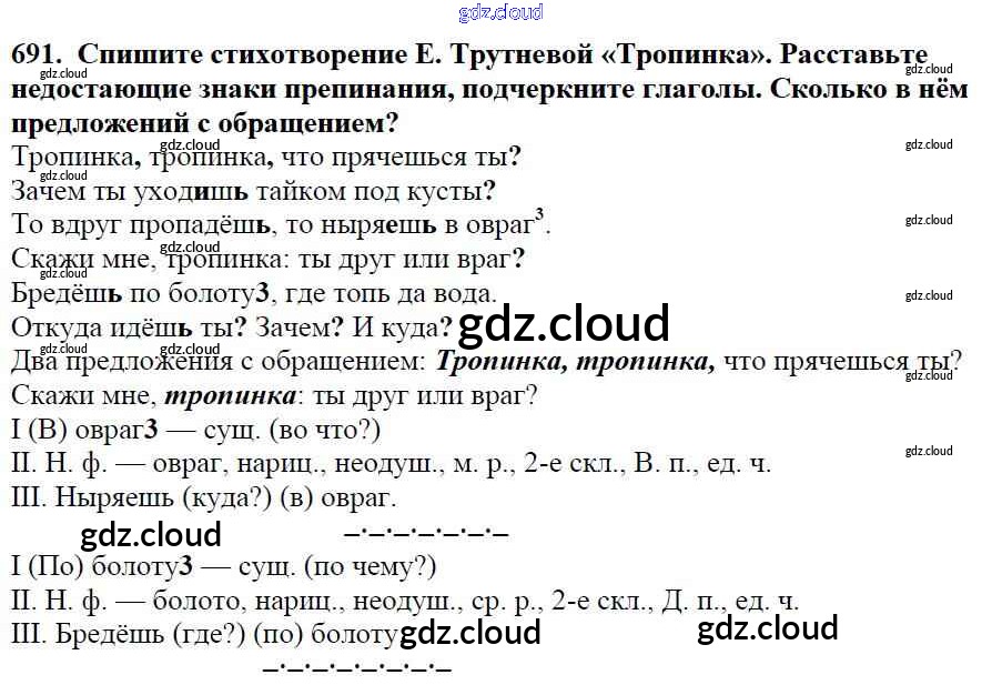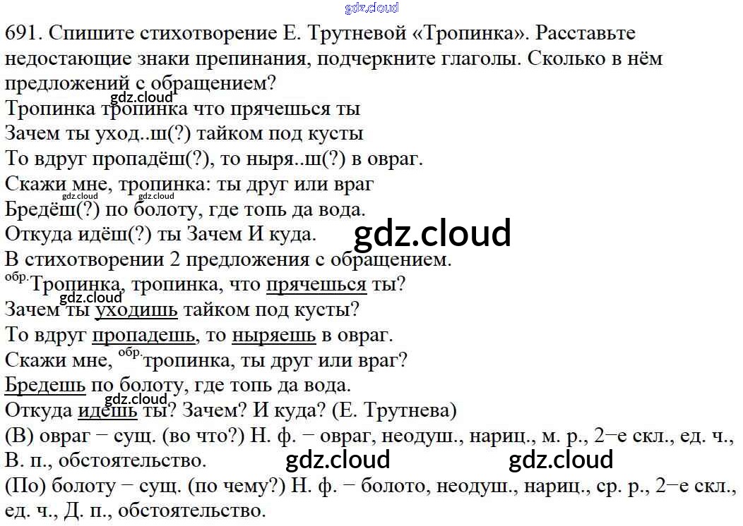 Ответ на задание 691 Учебник Русский язык за 5 (пятый) класс Баранов, Ладыженская, Тростенцова, Кулибаба, Григорян 2016, 2019 Часть 1, 2