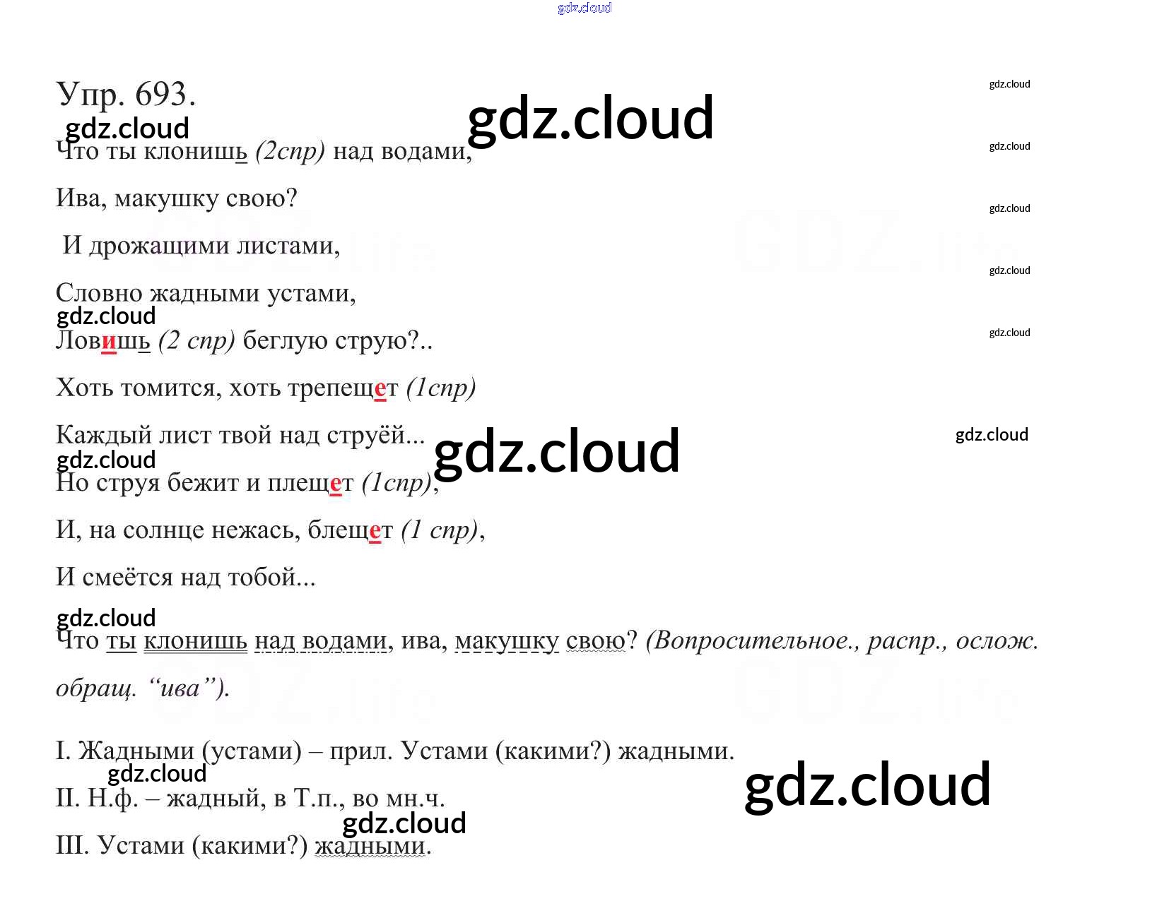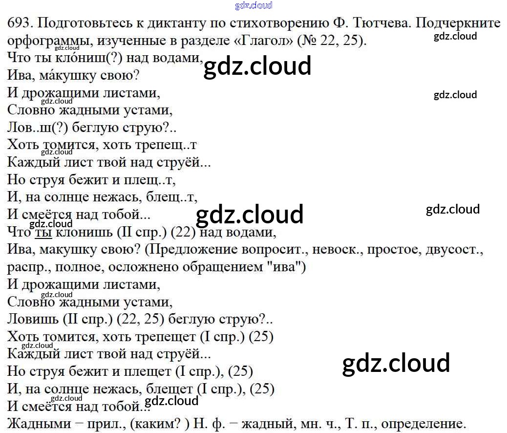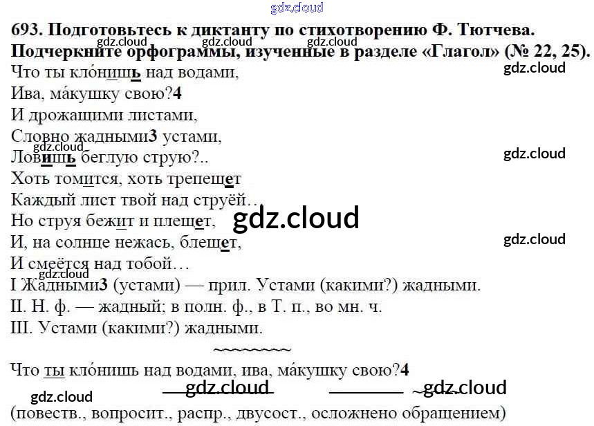 Ответ на задание 693 Учебник Русский язык за 5 (пятый) класс Баранов, Ладыженская, Тростенцова, Кулибаба, Григорян 2016, 2019 Часть 1, 2