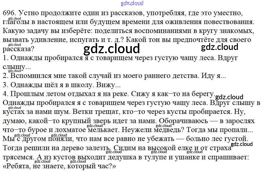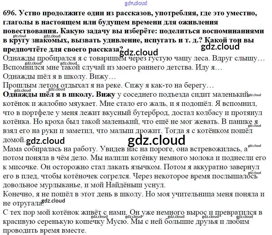 Ответ на задание 696 Учебник Русский язык за 5 (пятый) класс Баранов, Ладыженская, Тростенцова, Кулибаба, Григорян 2016, 2019 Часть 1, 2