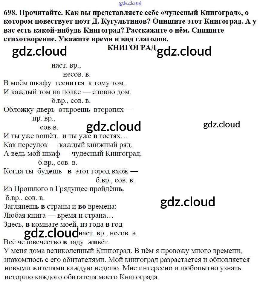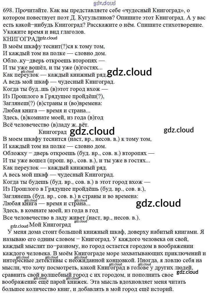Ответ на задание 698 Учебник Русский язык за 5 (пятый) класс Баранов, Ладыженская, Тростенцова, Кулибаба, Григорян 2016, 2019 Часть 1, 2
