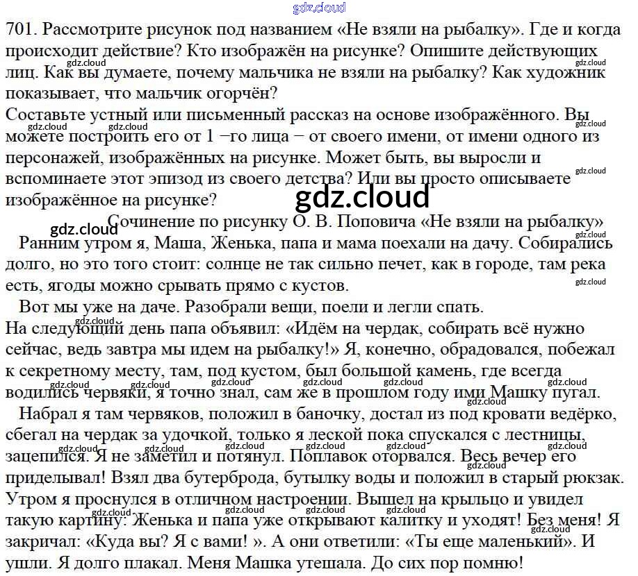 Ответ на задание 701 Учебник Русский язык за 5 (пятый) класс Баранов, Ладыженская, Тростенцова, Кулибаба, Григорян 2016, 2019 Часть 1, 2