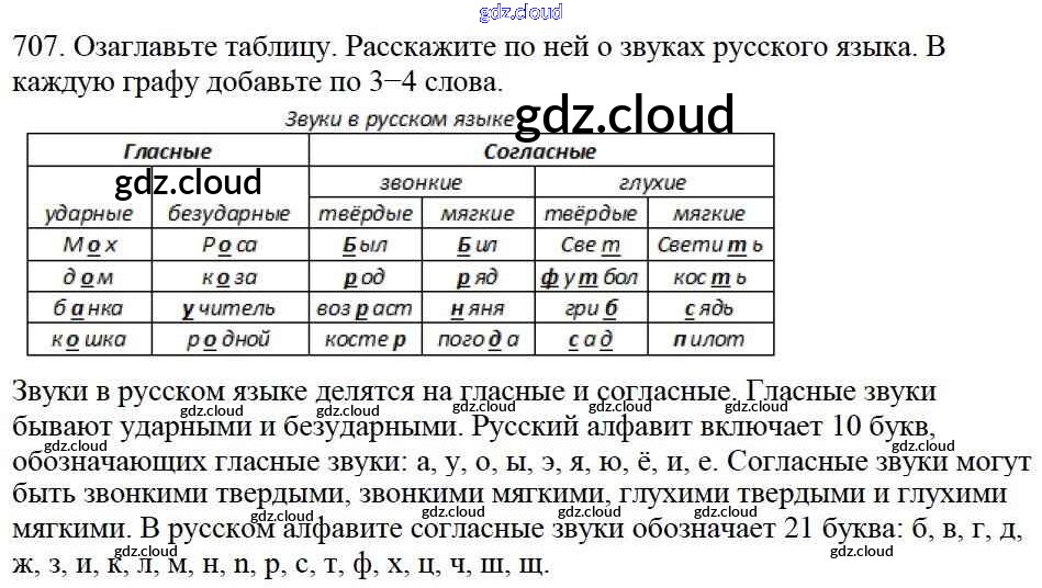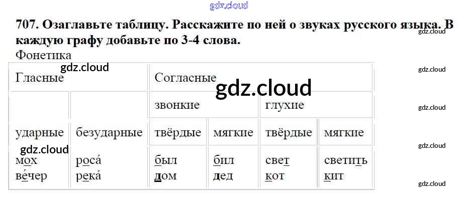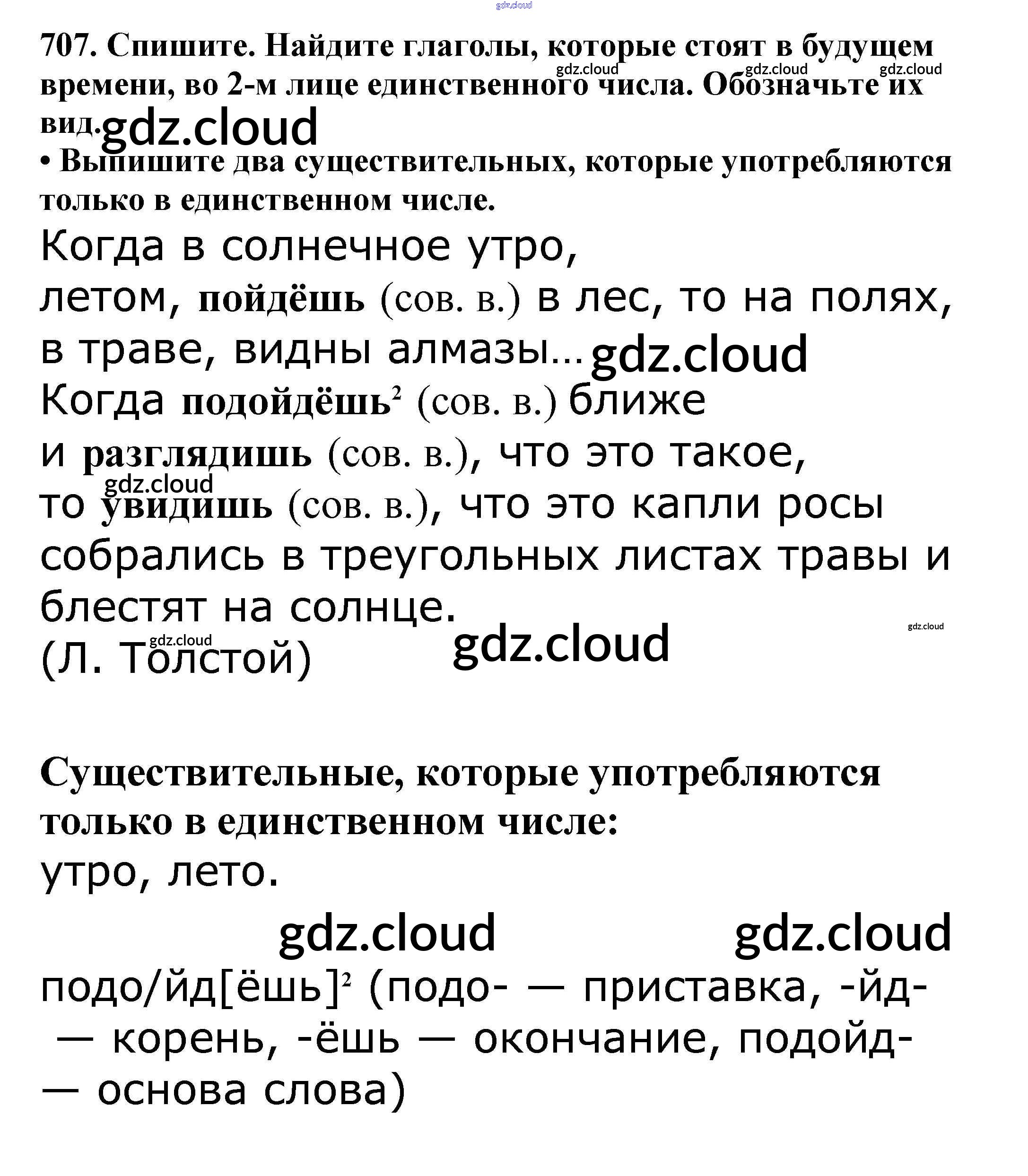 Ответ на задание 707 Учебник Русский язык за 5 (пятый) класс Баранов, Ладыженская, Тростенцова, Кулибаба, Григорян 2016, 2019 Часть 1, 2