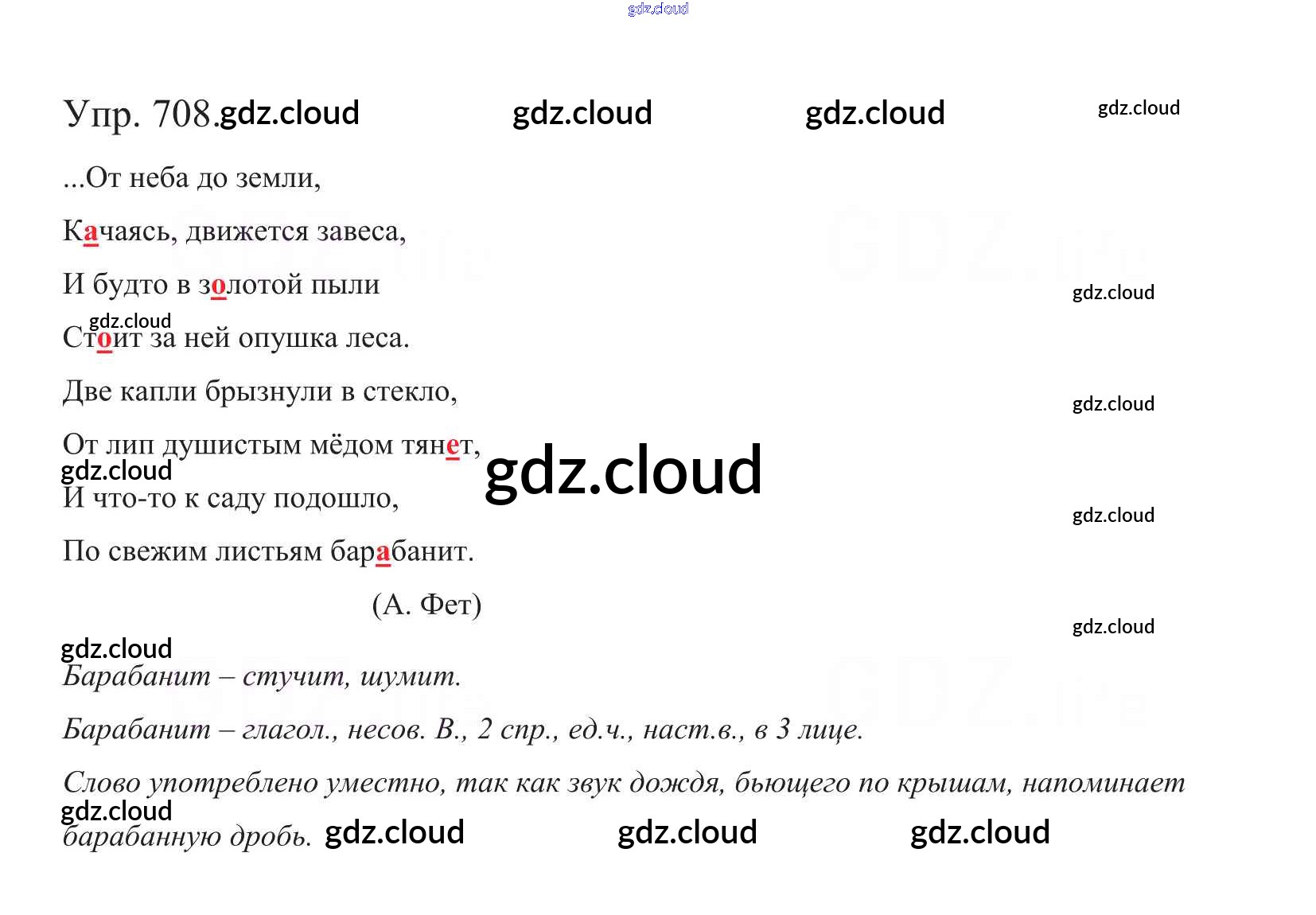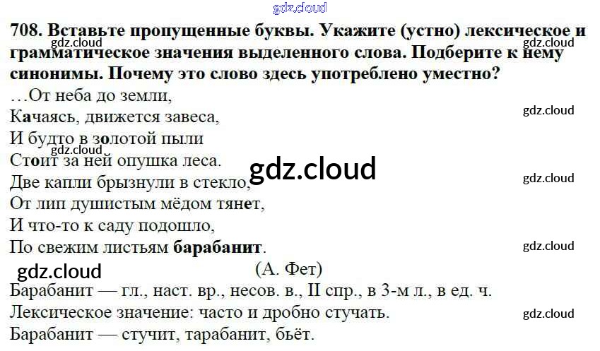 Ответ на задание 708 Учебник Русский язык за 5 (пятый) класс Баранов, Ладыженская, Тростенцова, Кулибаба, Григорян 2016, 2019 Часть 1, 2