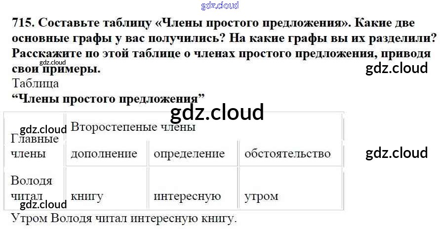Ответ на задание 715 Учебник Русский язык за 5 (пятый) класс Баранов, Ладыженская, Тростенцова, Кулибаба, Григорян 2016, 2019 Часть 1, 2