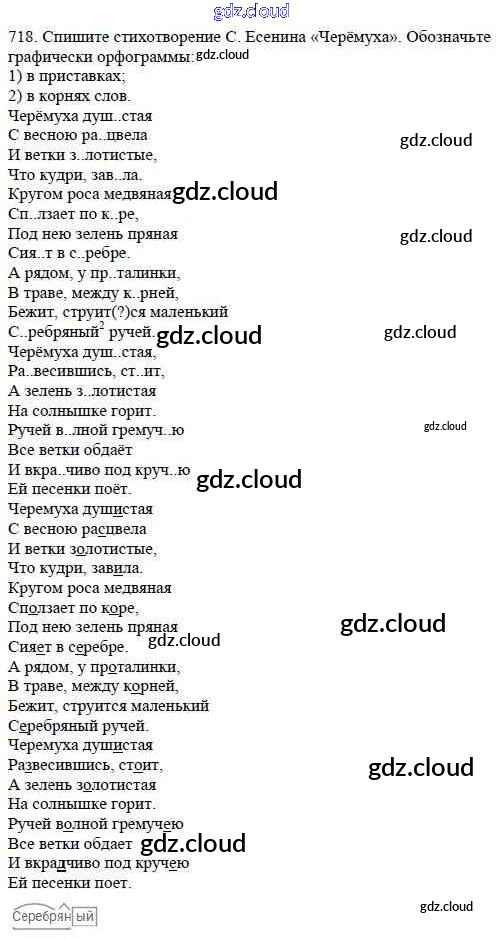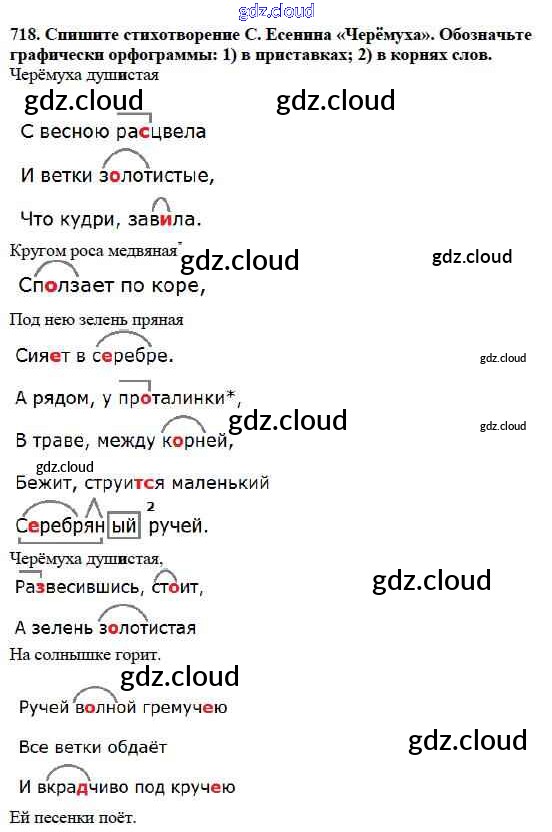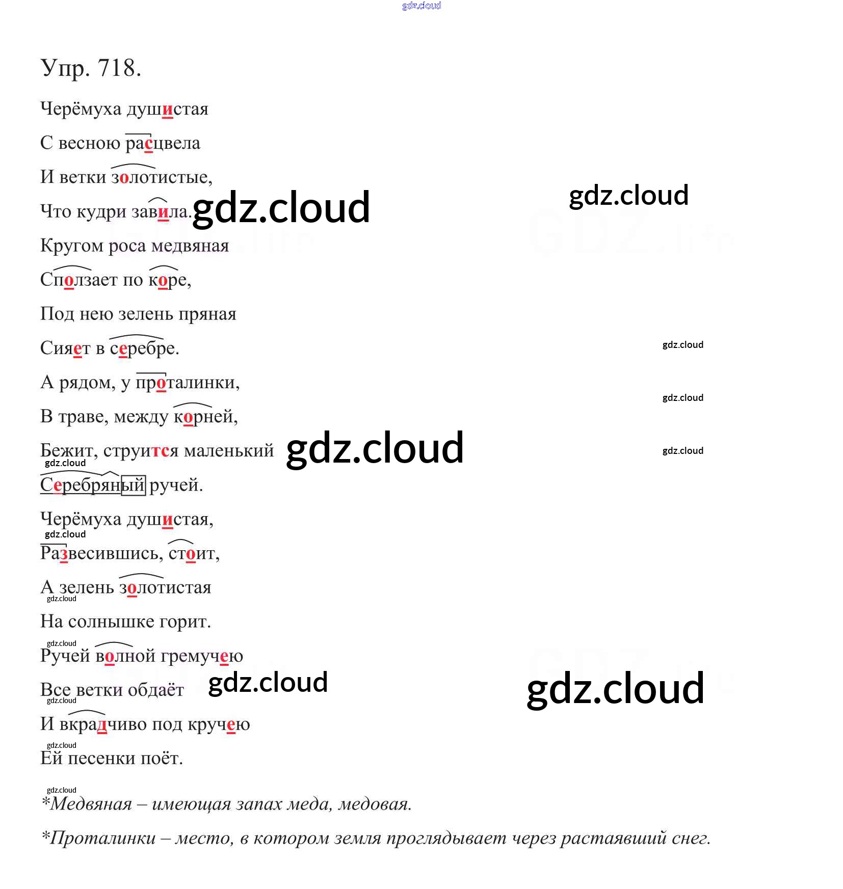 Ответ на задание 718 Учебник Русский язык за 5 (пятый) класс Баранов, Ладыженская, Тростенцова, Кулибаба, Григорян 2016, 2019 Часть 1, 2