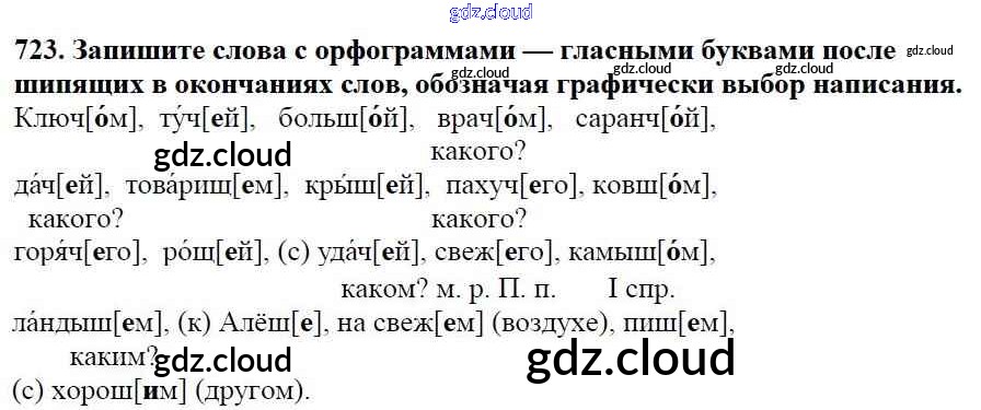Ответ на задание 723 Учебник Русский язык за 5 (пятый) класс Баранов, Ладыженская, Тростенцова, Кулибаба, Григорян 2016, 2019 Часть 1, 2